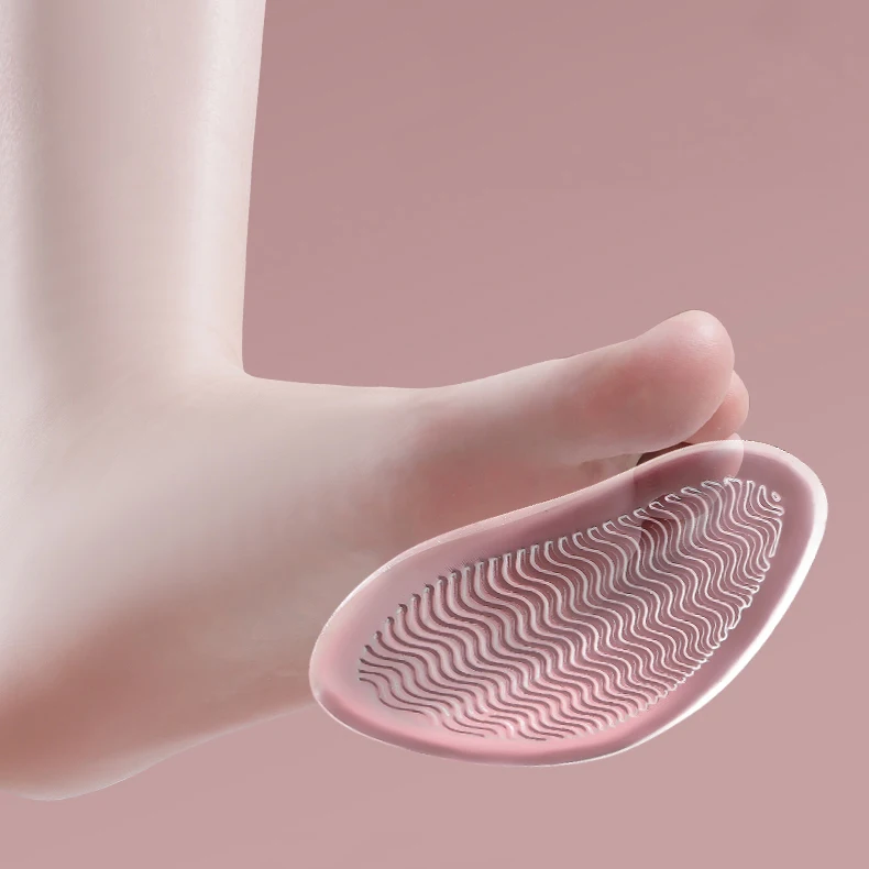Он принимает силиконовый гелевый эластомер, обладает хорошей эластичностью и обладает сильной амортизирующей способностью. Он может рассеивать и поглощать ударную силу, вызванную падением шагов. Это также может облегчить боль в передней части стопы, вызванную длительным стоя и повседневной носки на каблуках. Конструкция нижней паза не легко скользить, когда трение увеличивается. Выпуклая конструкция лучше подходит для передней части стопы и обеспечивает равномерное усилие передней части стопы. Посылка включает в себя: 1 пара подушечек для ног