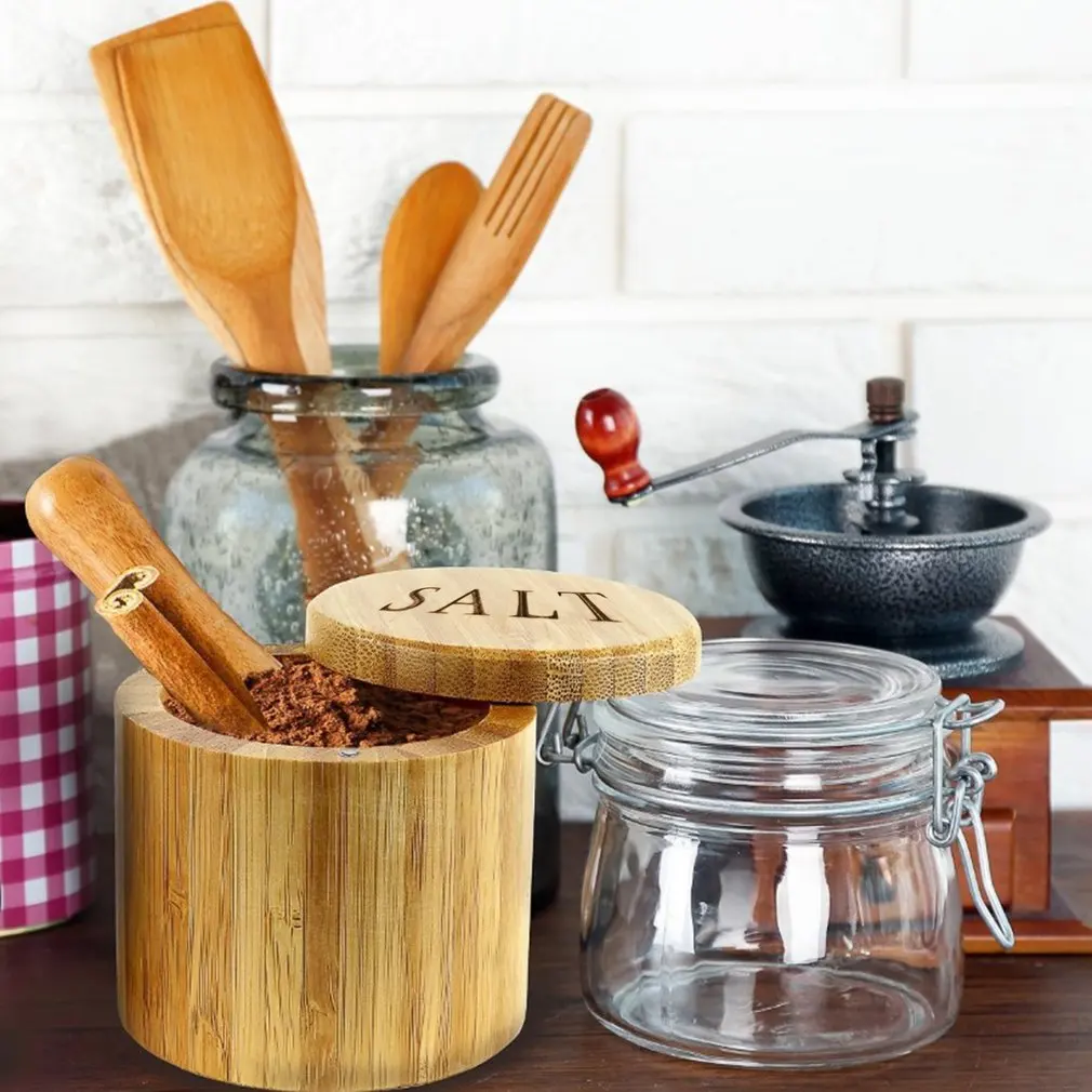 Эта приправа изготовлена из высококачественного бамбукового материала с очень хорошим качеством, подходит для хранения соли и других специй.