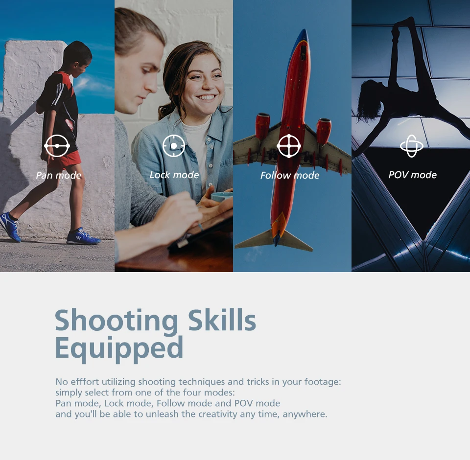 Усовершенствованный алгоритм стабилизации в мирах, полезная нагрузка Cll составляет до 200 г/фунта и 6 дюймов. Быстроразъемный зажим для смартфона удобен. Штуцер с резьбой 1/4 в нижней части ручки может быть установлен на любом штативе или удлинительном стержне. Вы можете улучшить запись, добавив больше универсальных аксессуаров.