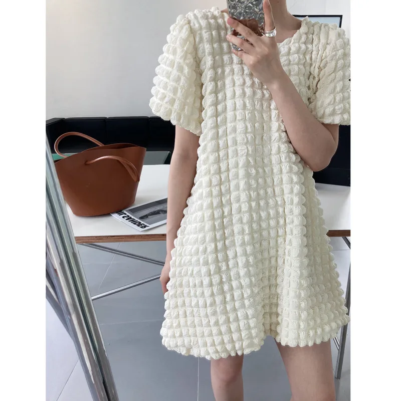 Отзывы о Женское платье с круглым вырезом и пышными рукавами однотонное свободное прямое