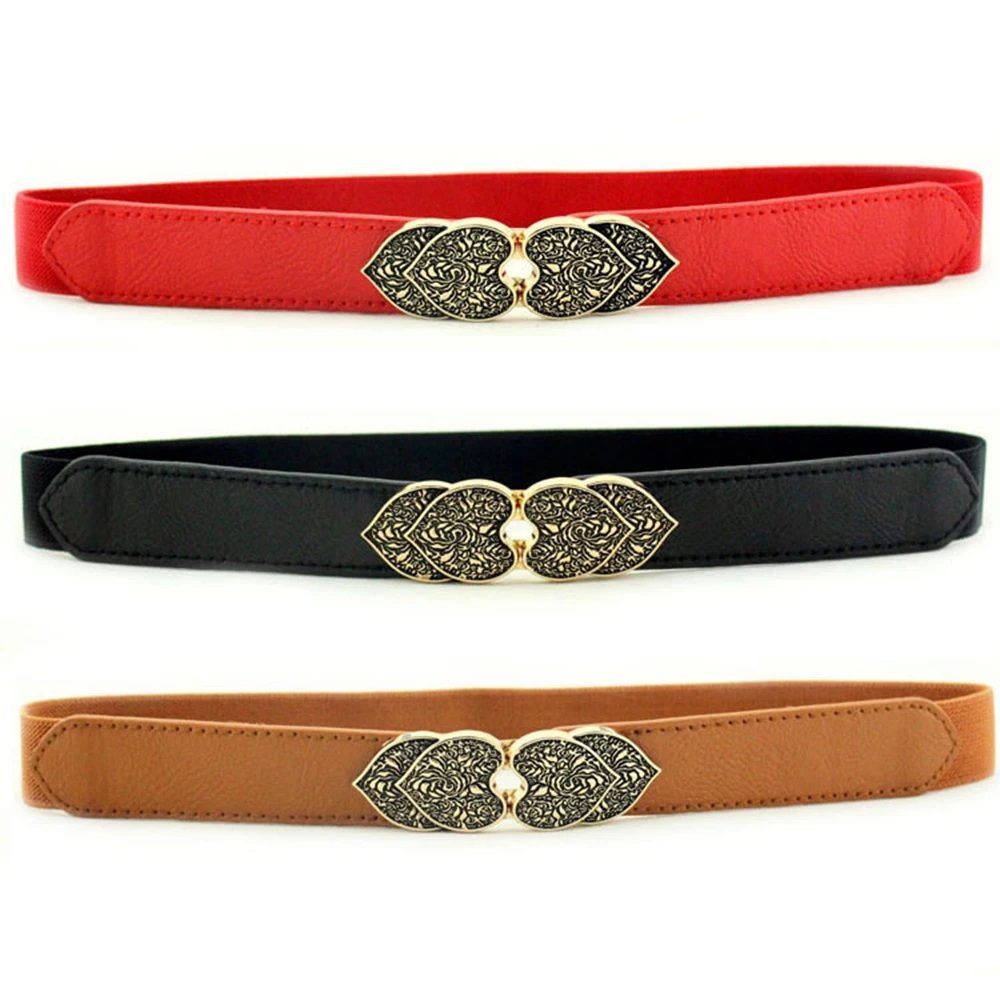 Отзывы о Ремень тонкий женский Модный Эластичный пояс с пряжкой из сплава двойным