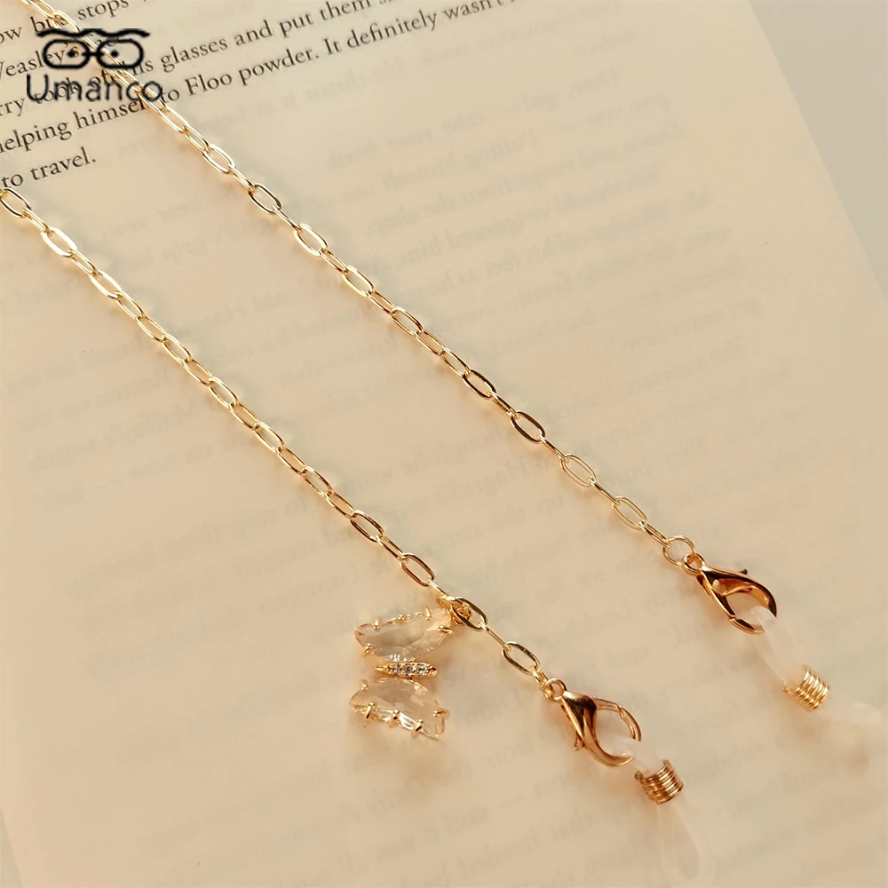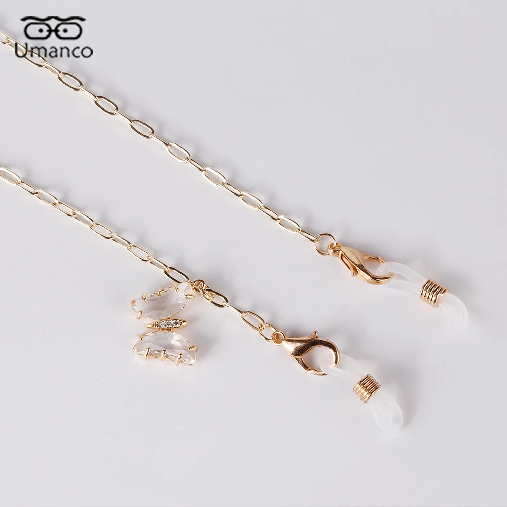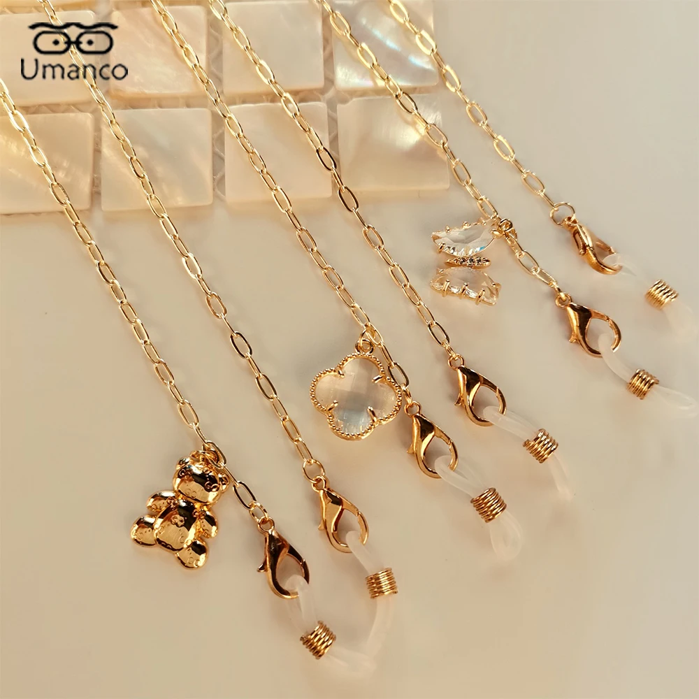 64 см золотая цепочка для очков для женщин и детей с подвеской в виде бабочки и медведя, противоскользящая маска, солнцезащитные очки, цепи, очки, ремешок, подарок