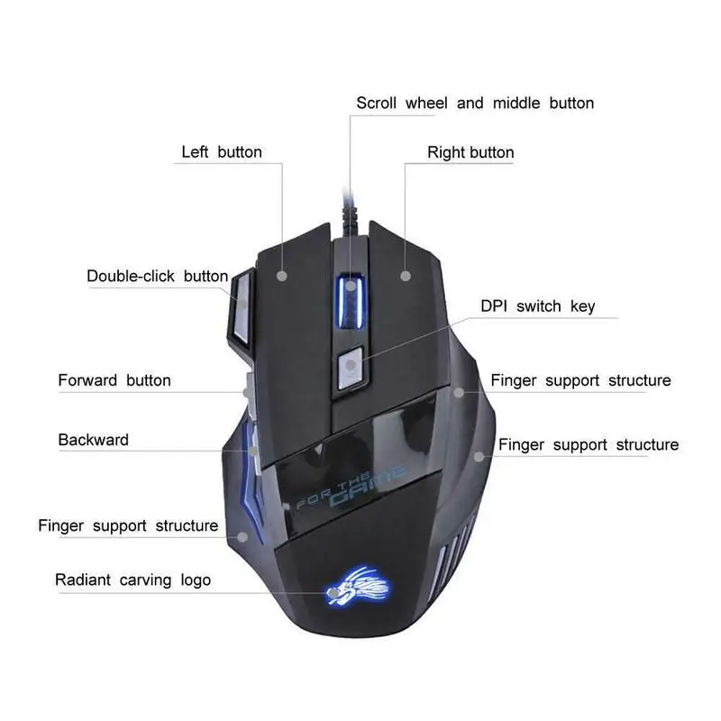 Проводная игровая мышь USB 7 кнопок регулируемая оптика 5500 DPI компьютерная - купить