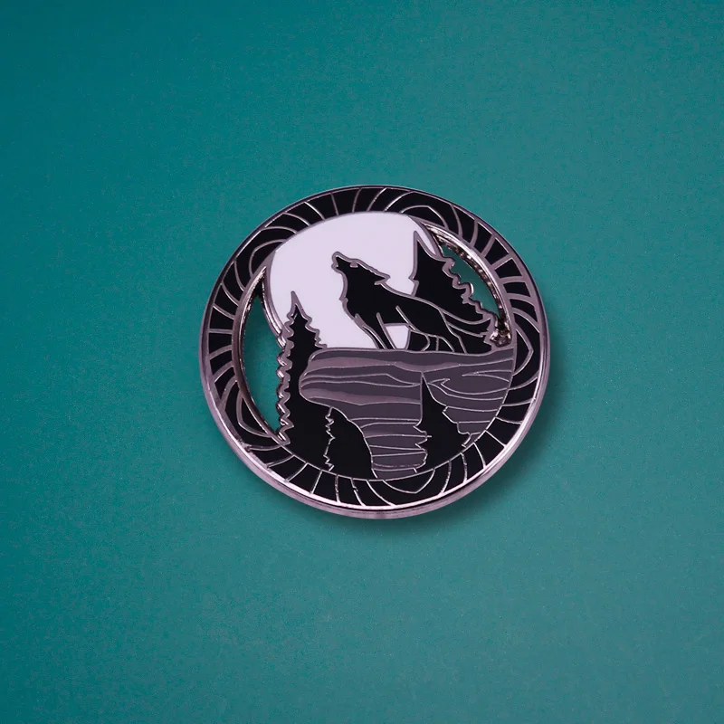 Металлические эмалевые значки волка в виде лунного затмения воющего на всю луну - купить