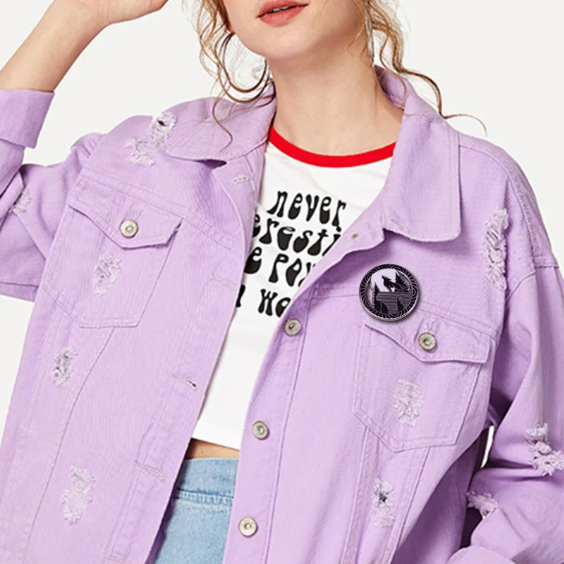Купить Металлические эмалевые значки волка в виде лунного затмения воющего на всю луну