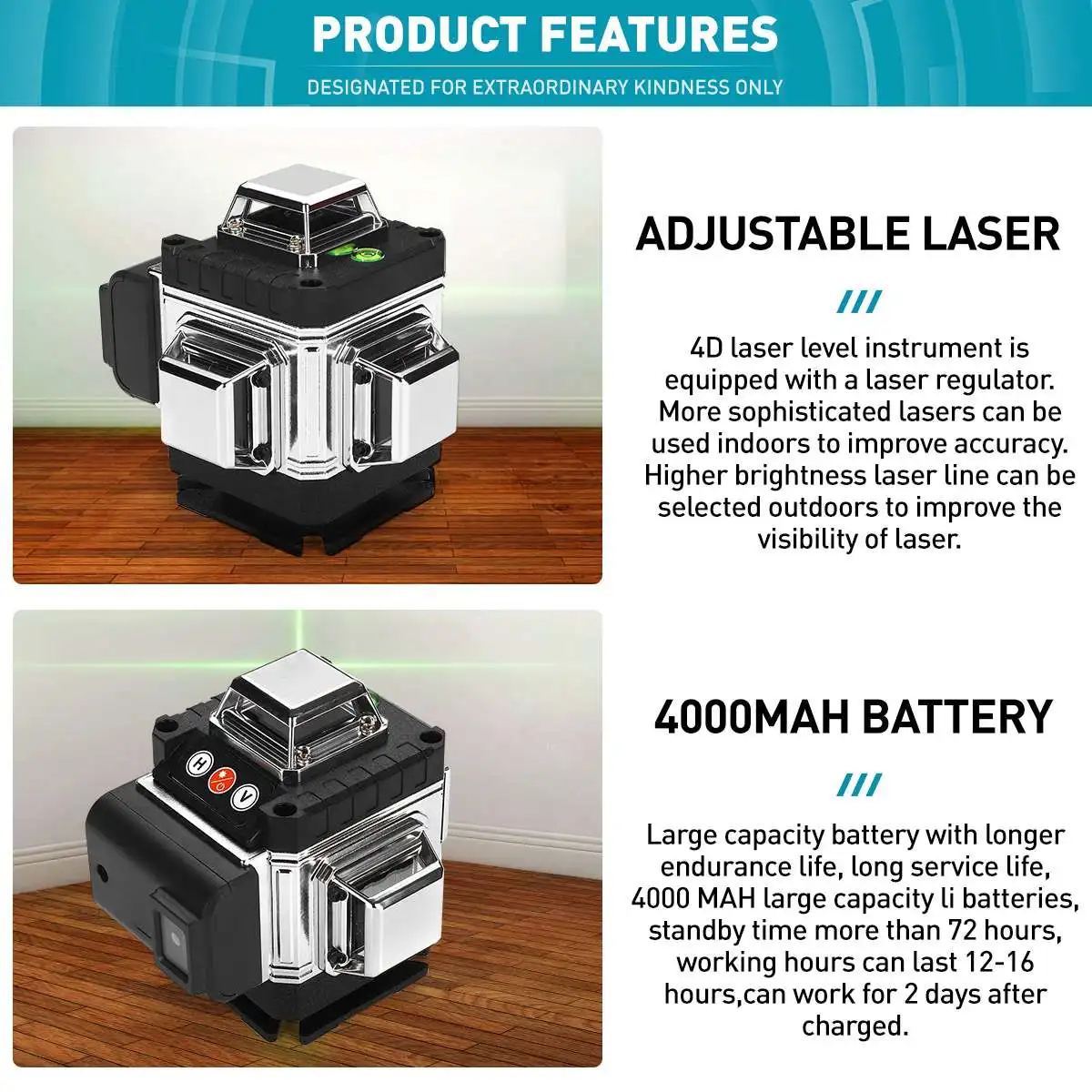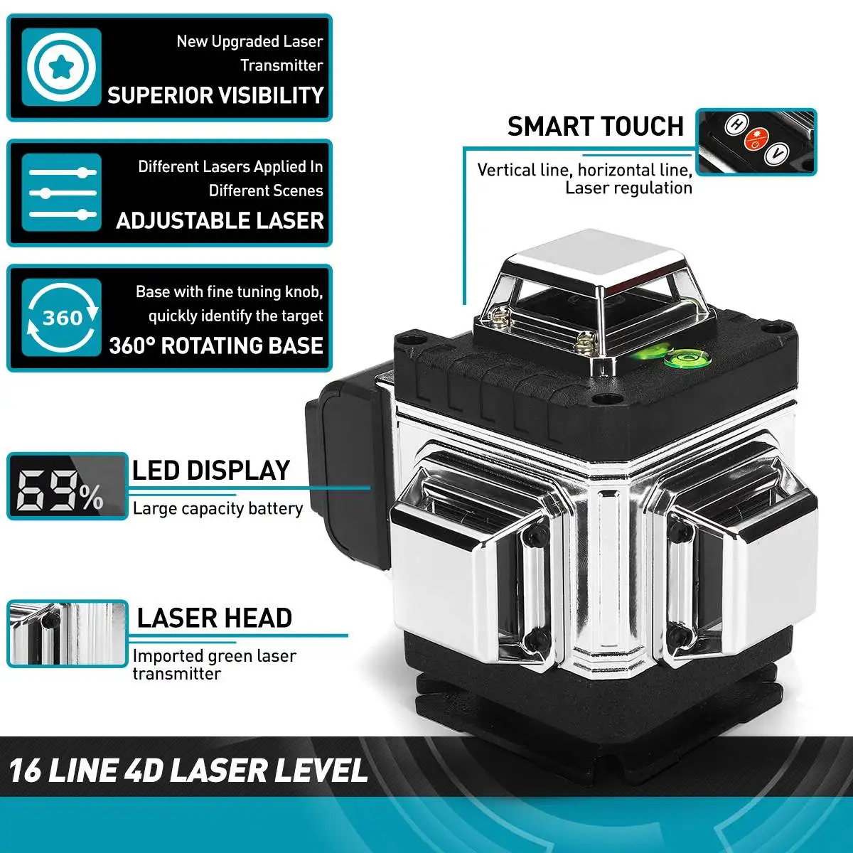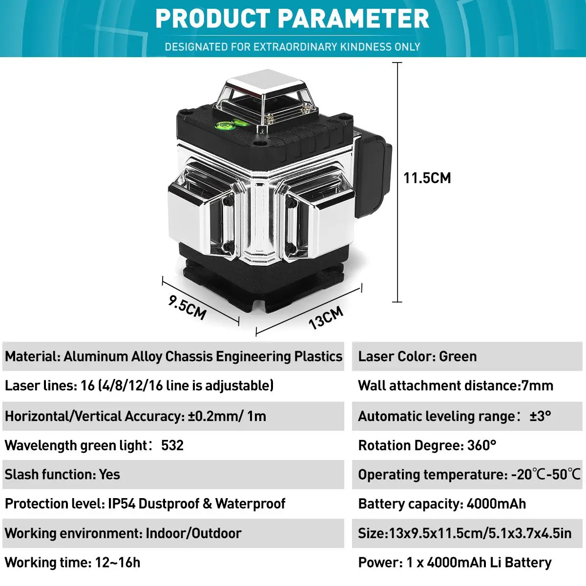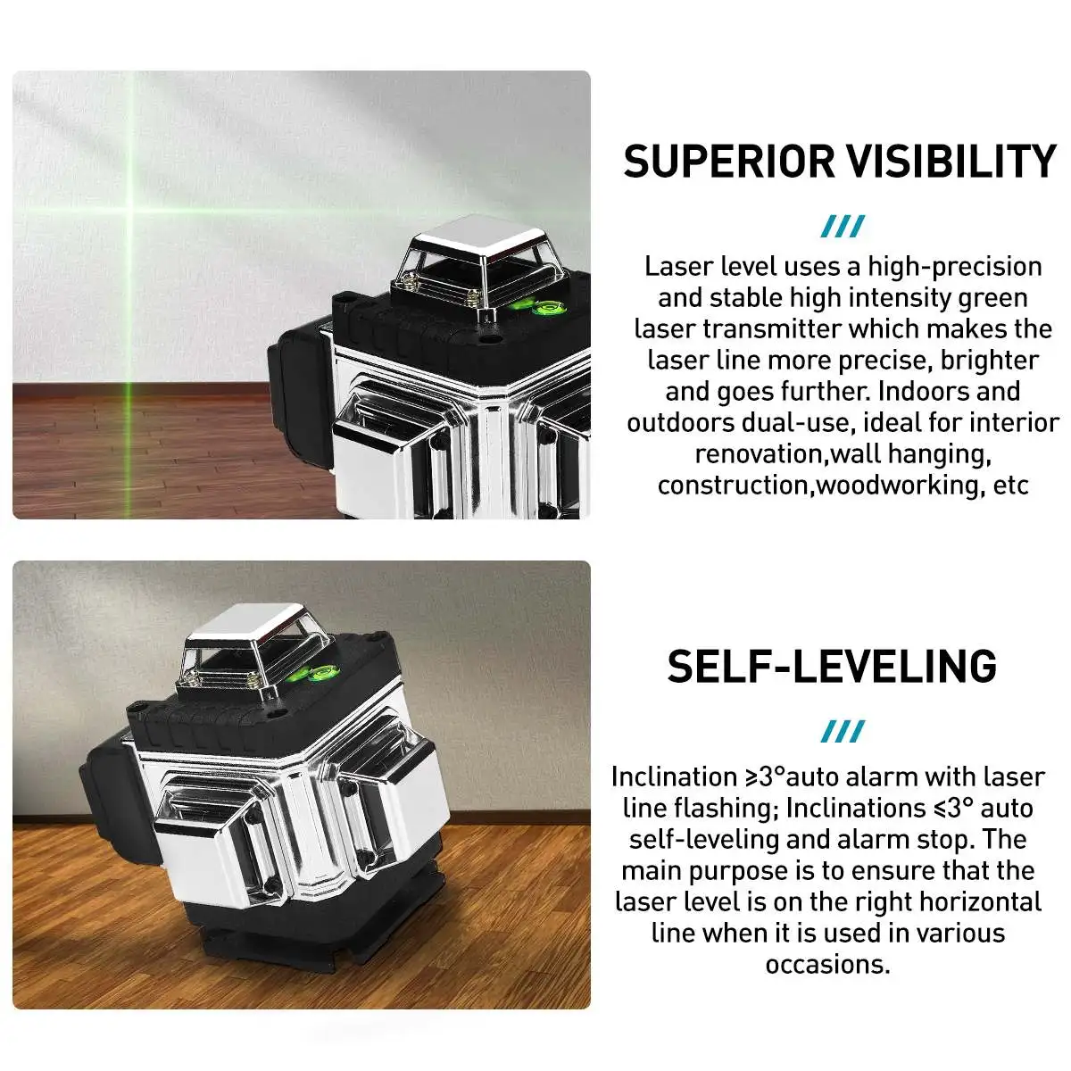 Лазерный уровень с треногой Зеленый 3D 4D 12/16 линий самонивелирующийся - купить