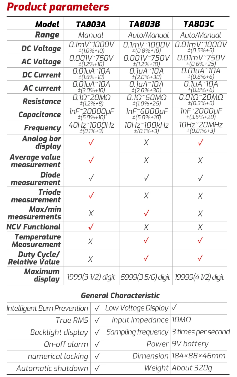 Цифровой мультиметр TASI TA803A/B автоматический/ручной диапазон профессиональный - купить