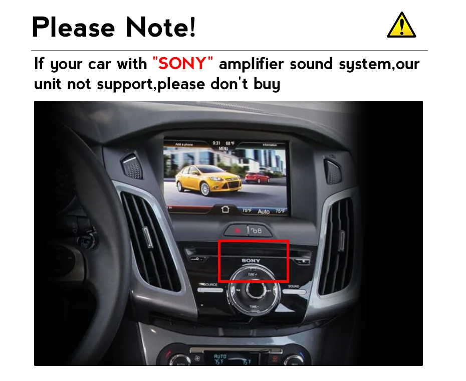 Если ваш автомобиль с"SONY"Усилитель звуковой системы, наш блок не поддерживает, пожалуйста, не покупайте