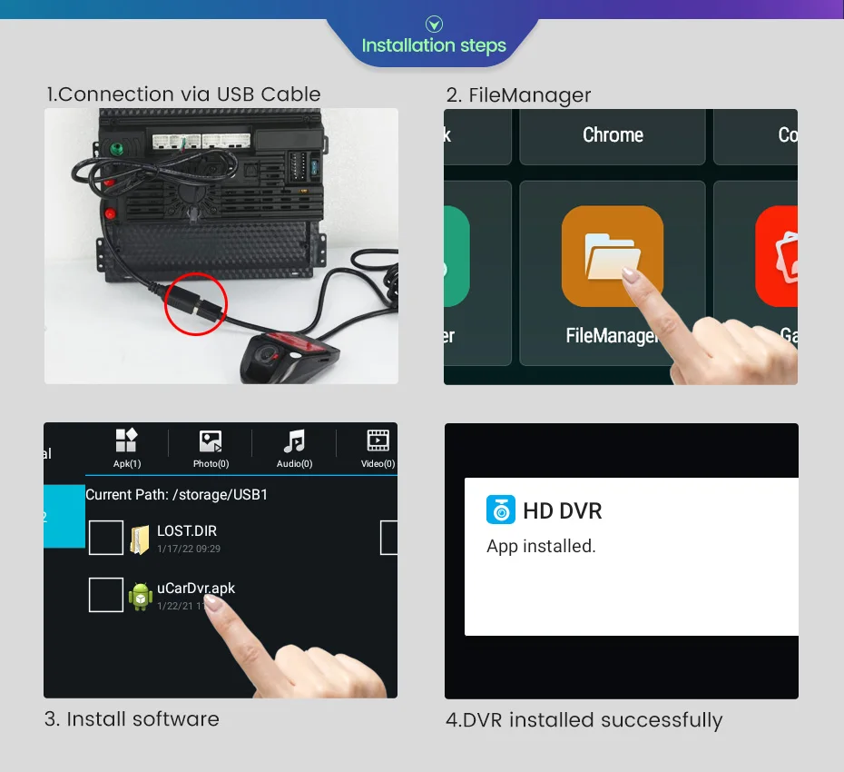 Когда автомобиль находится на заднем ходу, Этот автомобильный DVD автоматически переключается на изображение камеры заднего вида с помощью линии парковки.> вы можете смотреть видео на радио, подключив USB. Легко подключить и легко смотреть.