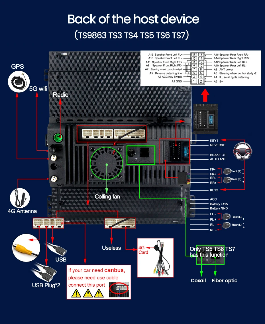 Поддержка 4G Lte, вставьте карту 4G, вы можете смотреть в реальном времени, слушать msuci онлайн, смотреть фильмы, И сделать ваш автомобиль легко onnected к Интернету в любое время (только для TS3 TS5 TS6)