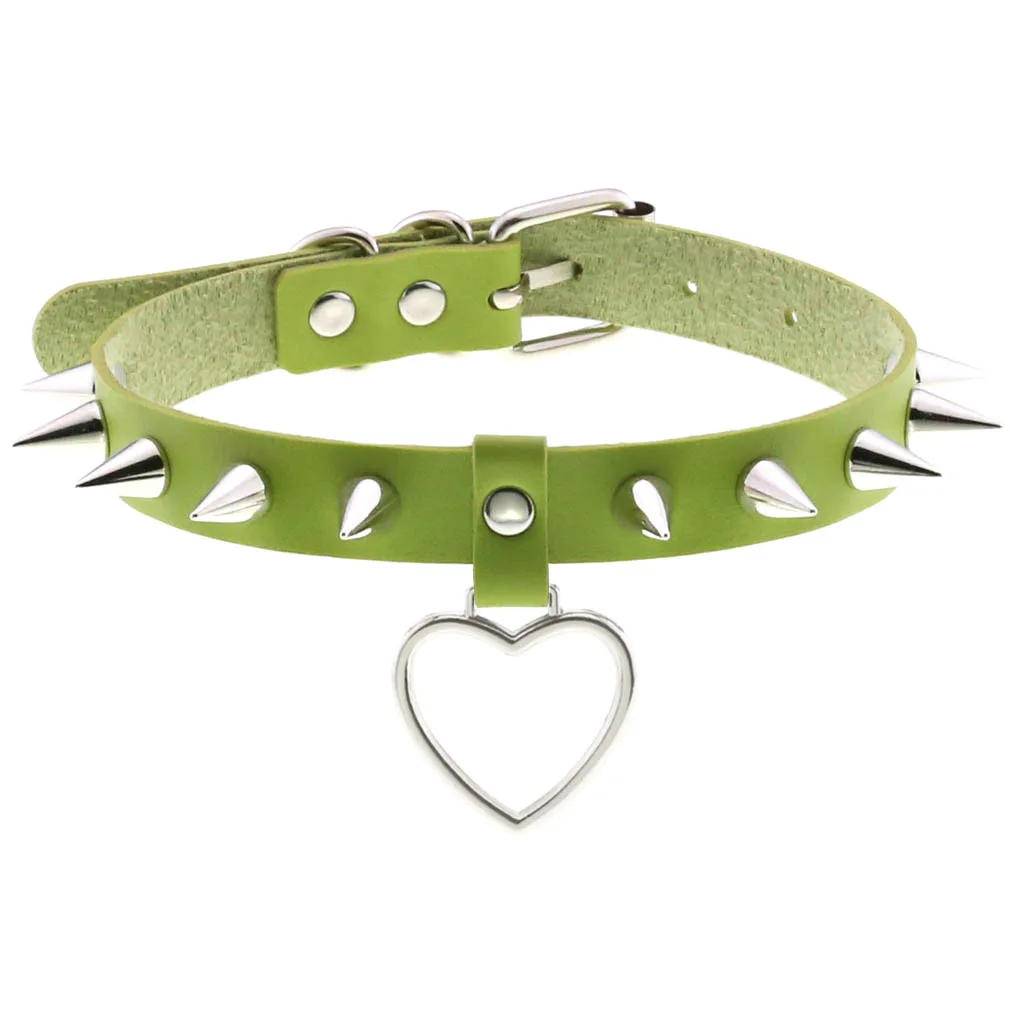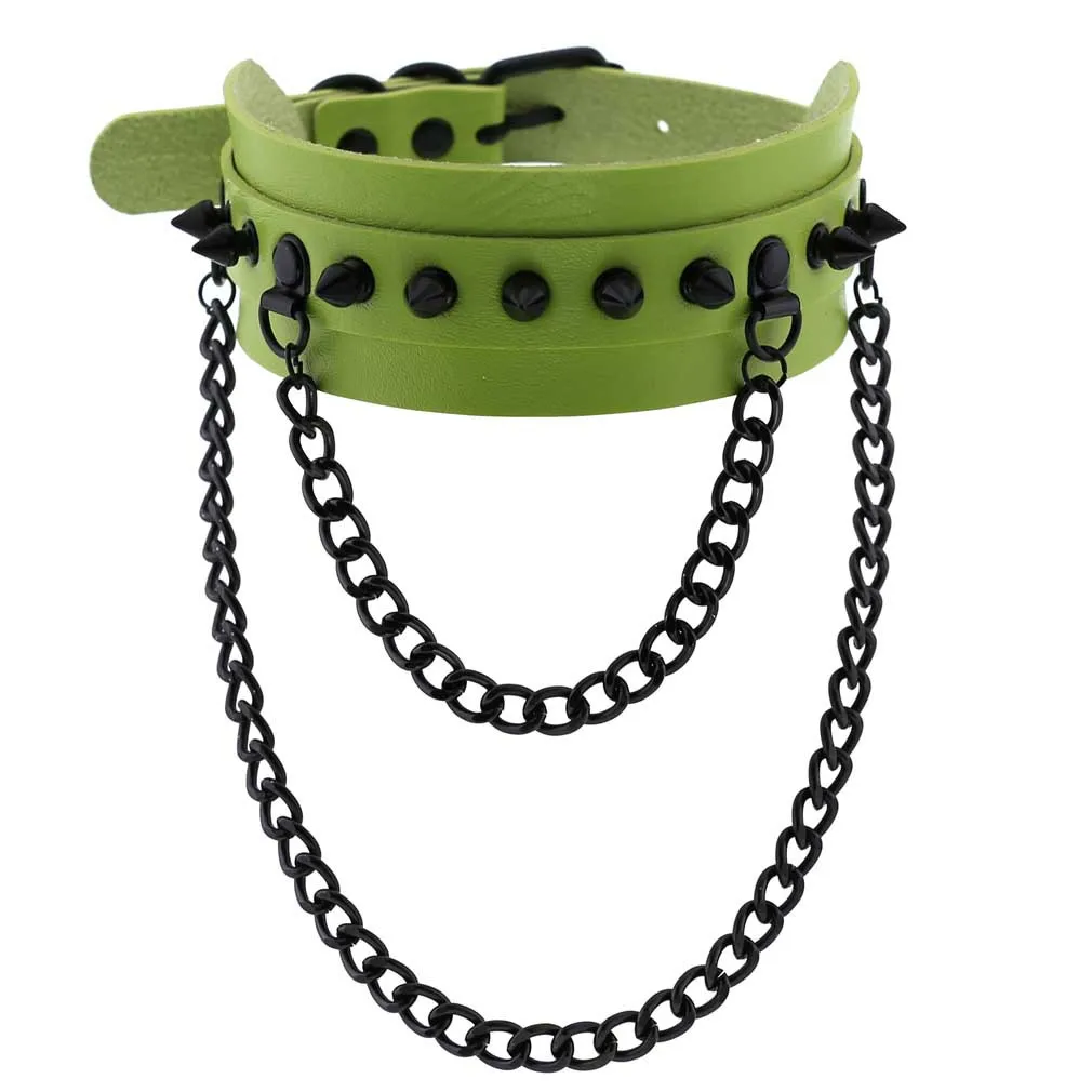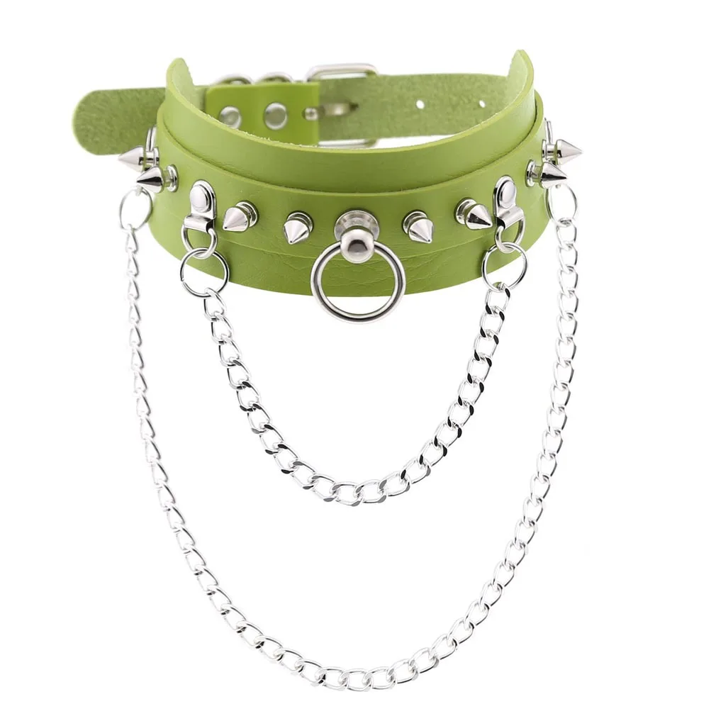 Эмо Спайк чокер панк воротник зеленый гот ожерелье модный веганский кожаный пояс чокер аксессуары Harajuku готические ювелирные изделия Хэллоуин