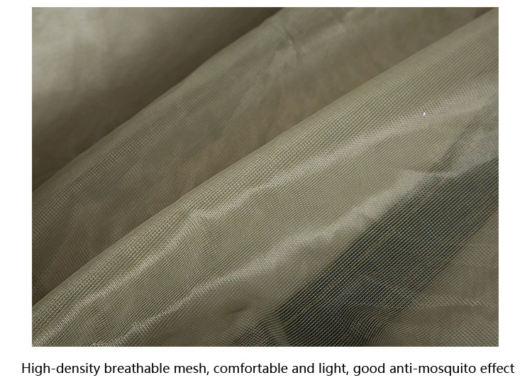 1. Продукт представляет собой систему защиты от комаров, изготовленную из сетки высокой плотности, подходящую для любого использования на открытом воздухе, облегченное оборудование, небольшой объем хранения, небольшая сетка может блокировать все виды микронасекомых.