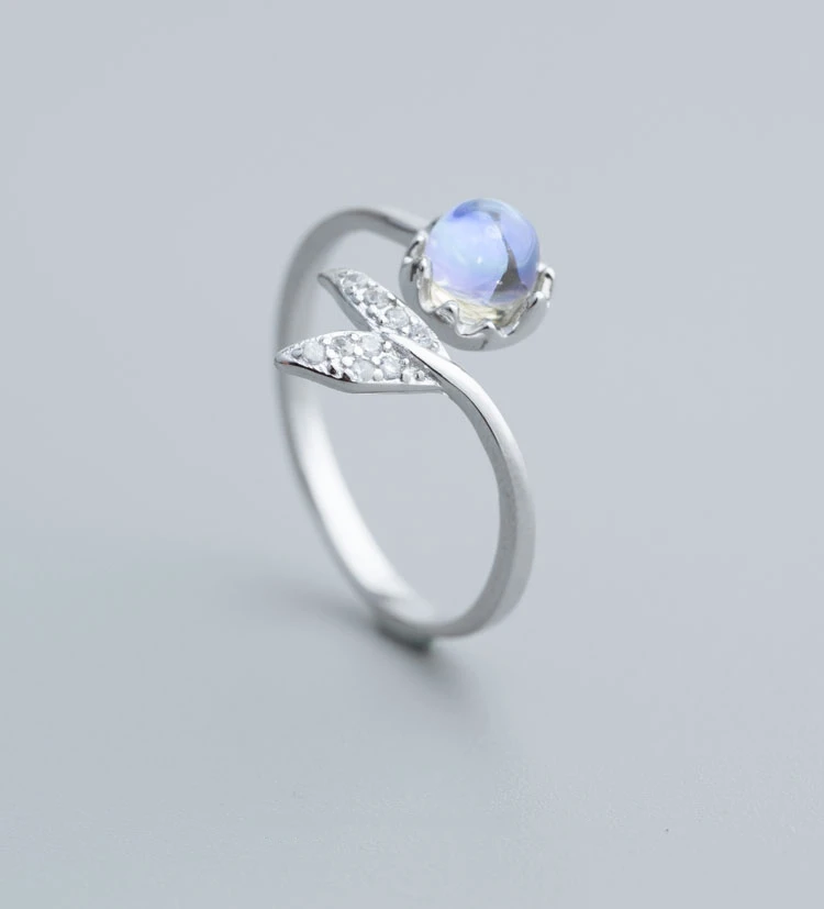 Отзывы о Женское серебряное кольцо с лунным камнем открытое регулируемое в готическом