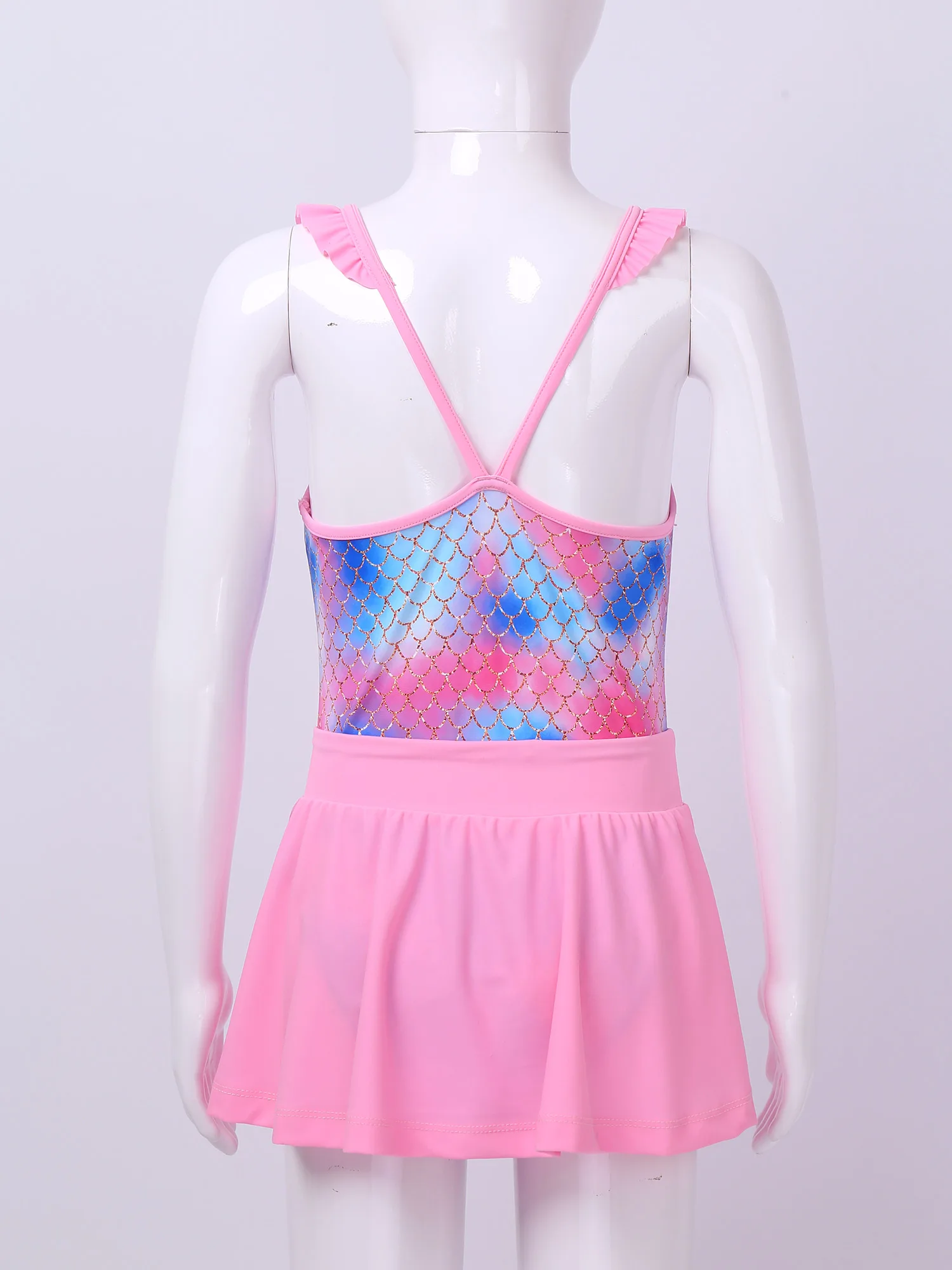 Принт в виде рыбьей чешуи, лямки, открытая спина, комбинезон для купания, сочетающийся с юбкой, позволяет вашей девочке увидеть больше глаз.