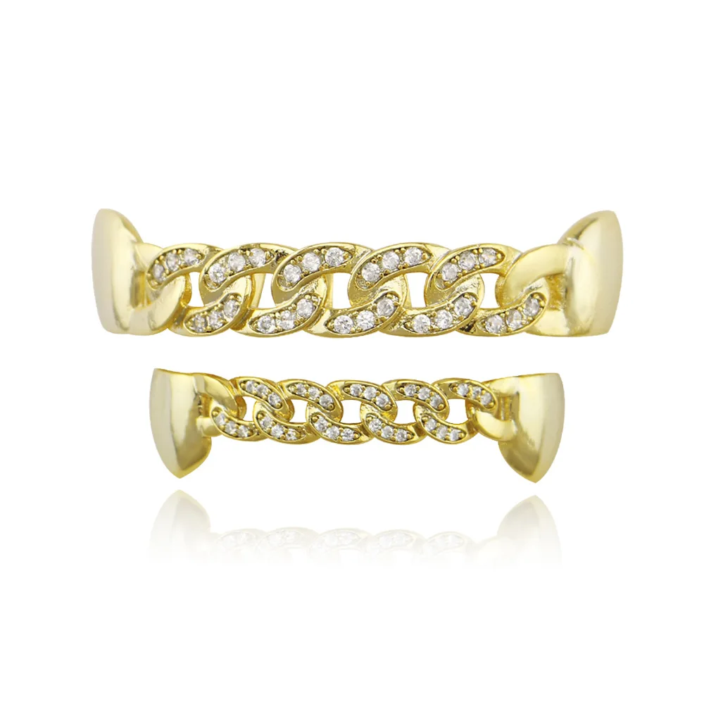 Купить Кубинская звеньевая решетка чистый HQ позолоченный низ для зубов в стиле хип-хоп