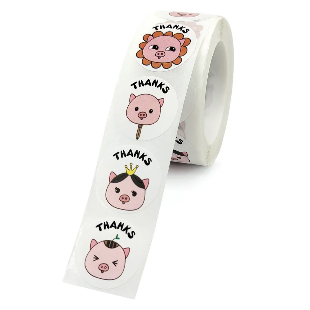 500Pcs Cute Pig Thank you stickers Kawaii Animal Round Handmade Wrapping Paper Seal Labels Use Gift Teacher Reward Stationery - купить по - купить