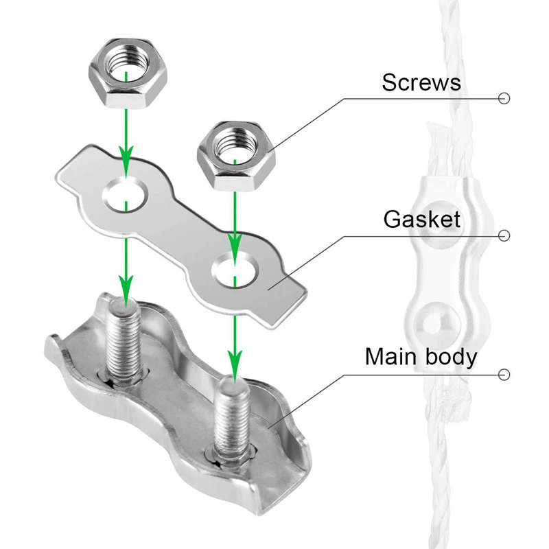 Прочный материал: Поли соединитель каната изготовлен из нержавеющей стали 304, который является прочным и прочным, так что вы можете использовать их в течение длительного времени, благодаря своим функциям вы можете легко и безопасно отремонтировать свои заборы и связать провода, чтобы избежать ненужных потерь