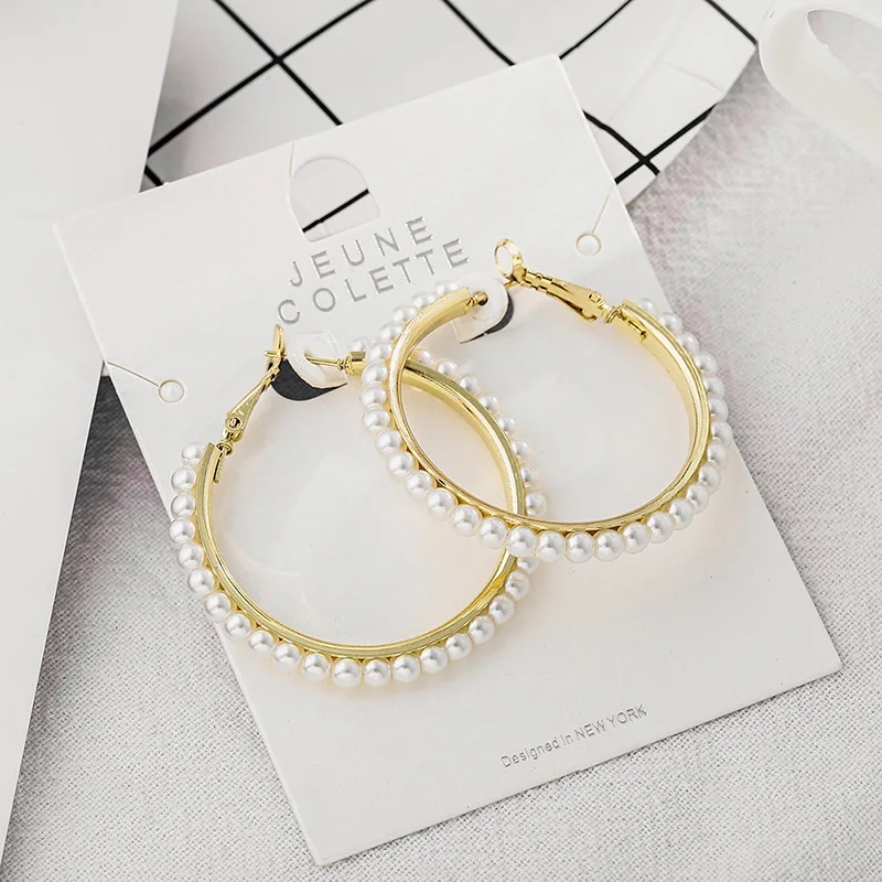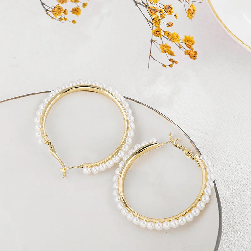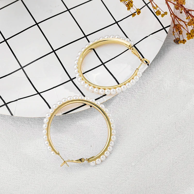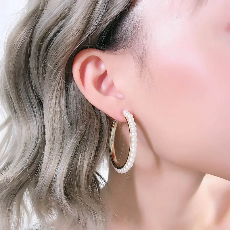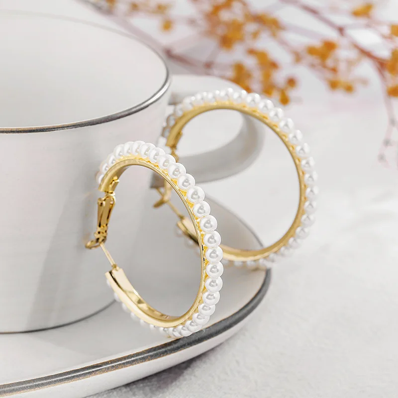 European Style Big Circle Hoop Earrings for Women High Quality Delicate Pearl Statement Earring Gold Color Jewelry Party Gift Украшения и - купить