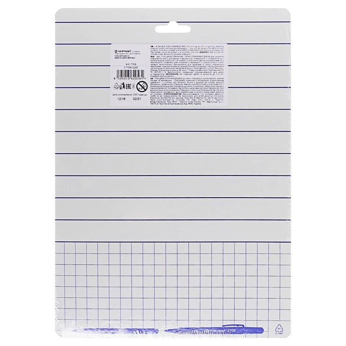 Доска маркерная, A4, двухсторонняя Centropen 7769: без рисунка/клетка и линейка, с маркером
