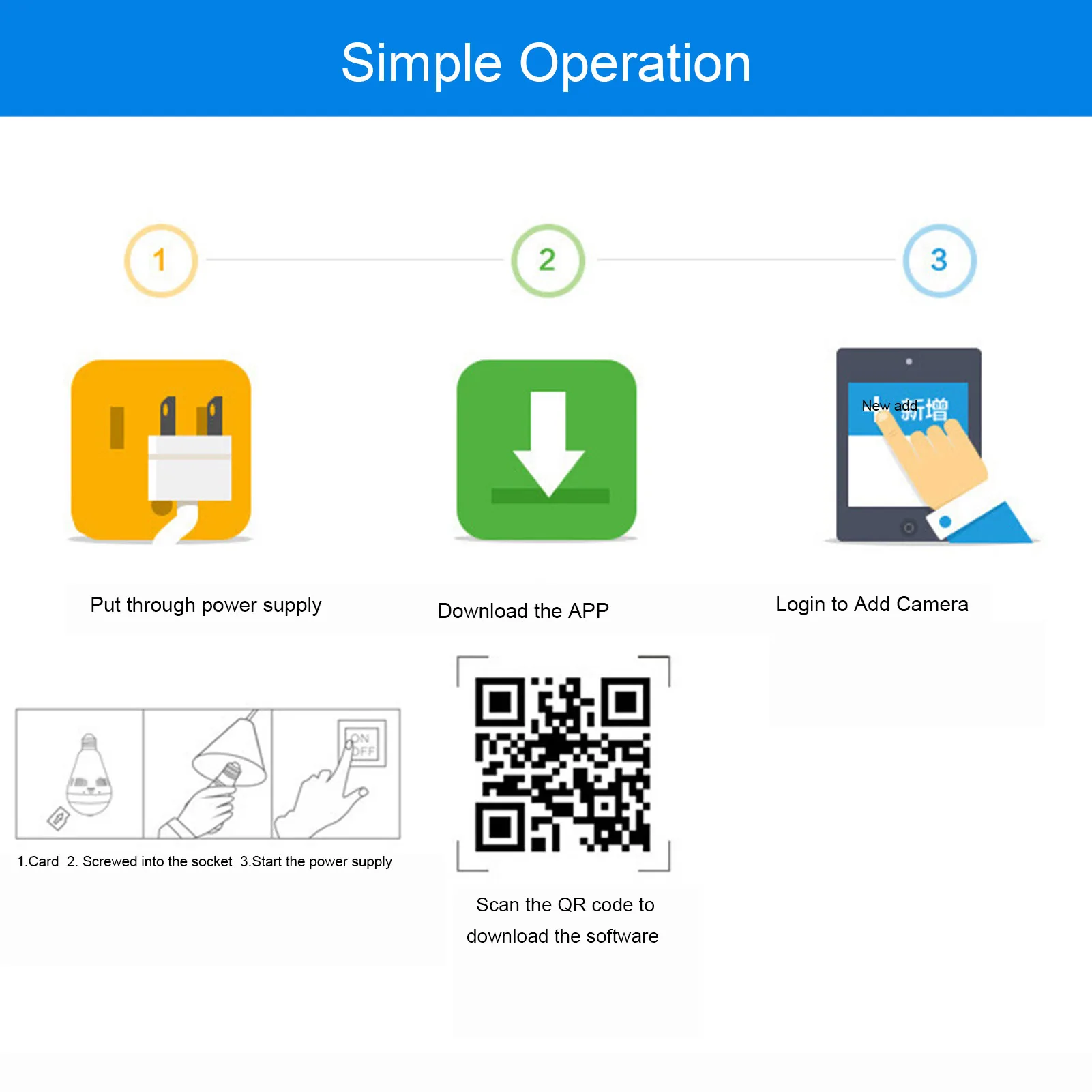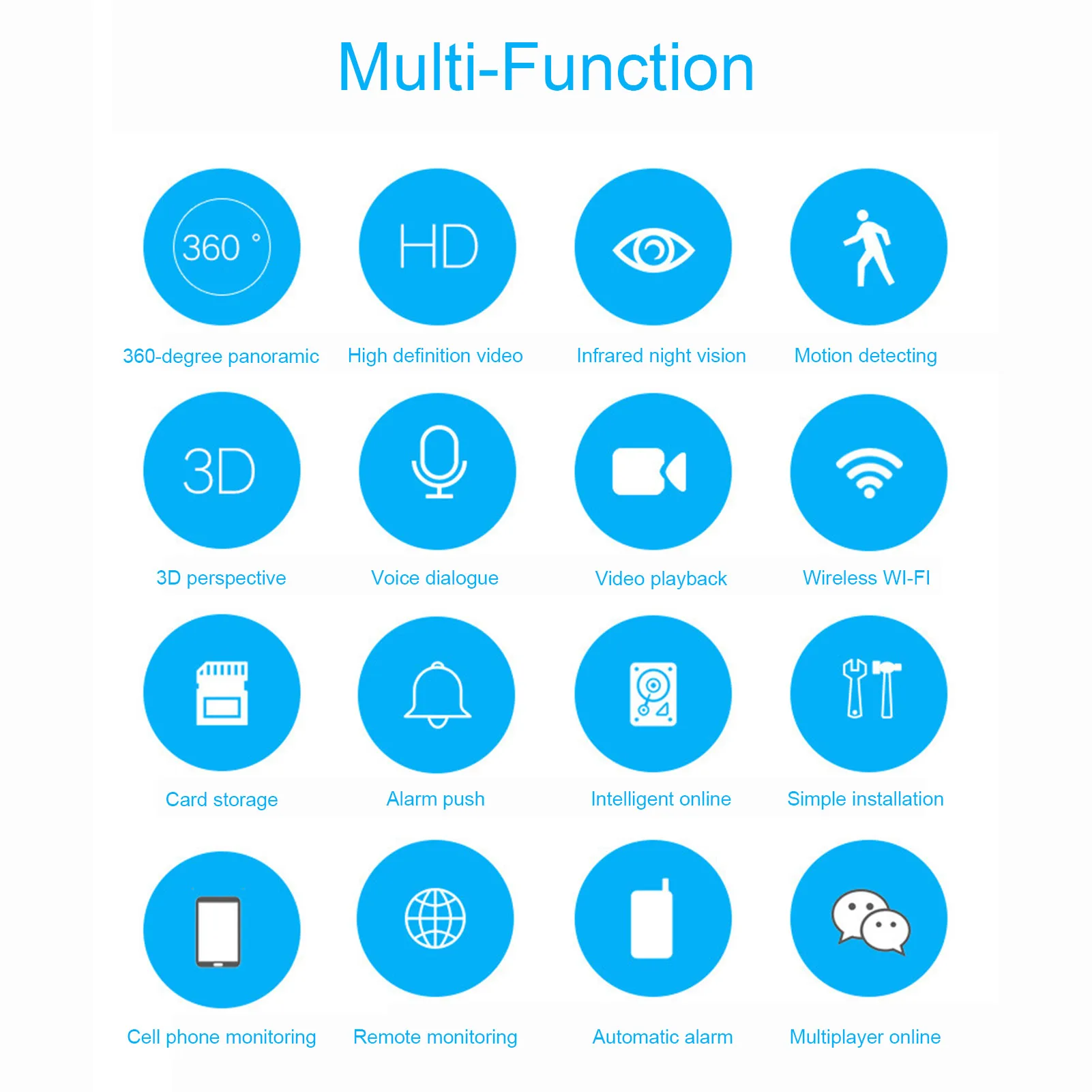 Без проводной лампы сети высокой четкости 1080P 360 градусов камера видеонаблюдения, интеллектуальное инфракрасное ночное видение, обнаружение движения, поддерживает дистанционный мониторинг, интеллектуальные онлайн и другие функции, простая эксплуатация и установка.