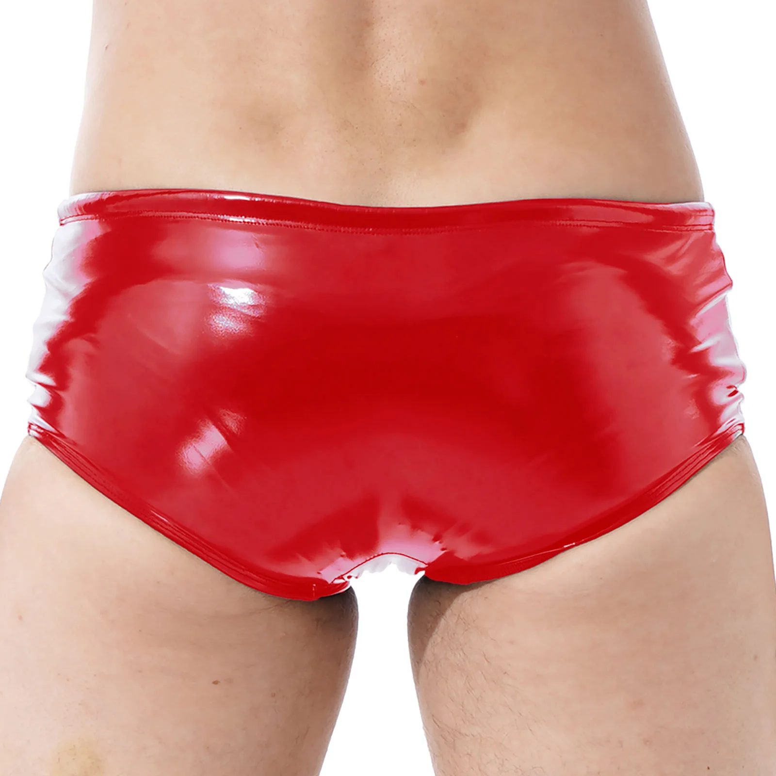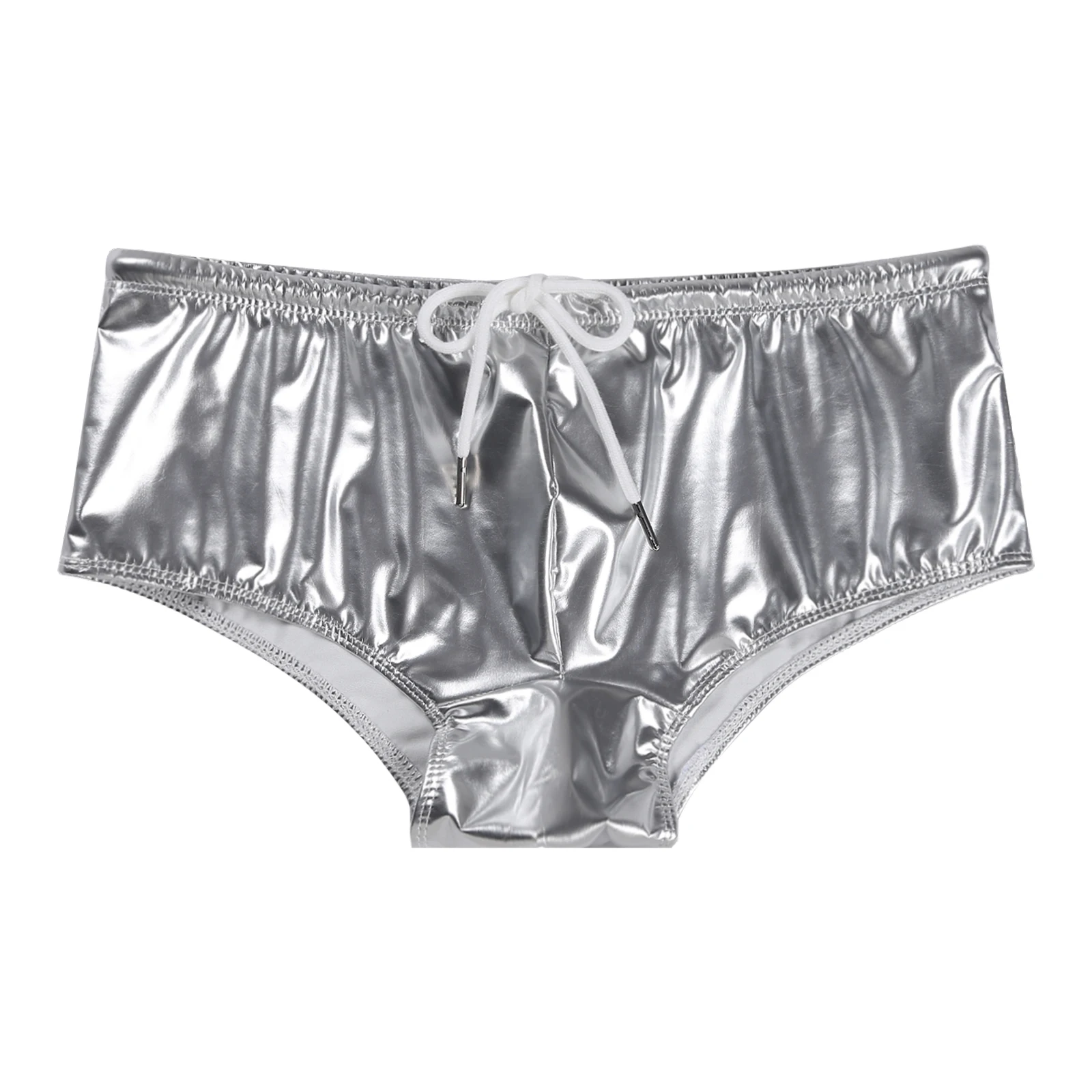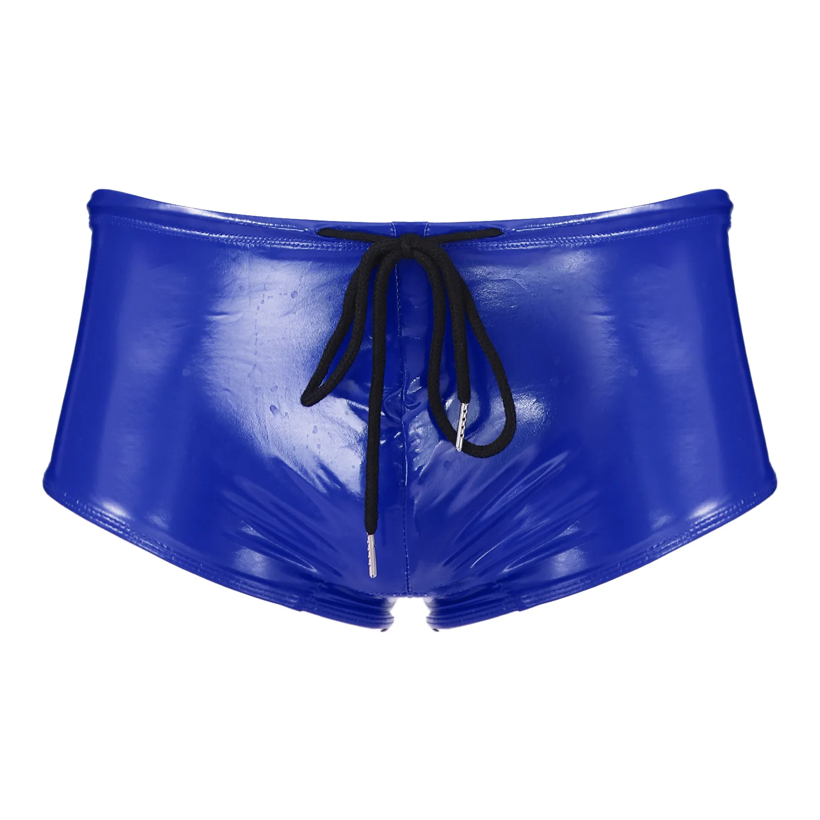 Мужские плавки из лакированной кожи с низкой посадкой и завязками, шорты-боксеры, купальные костюмы.
