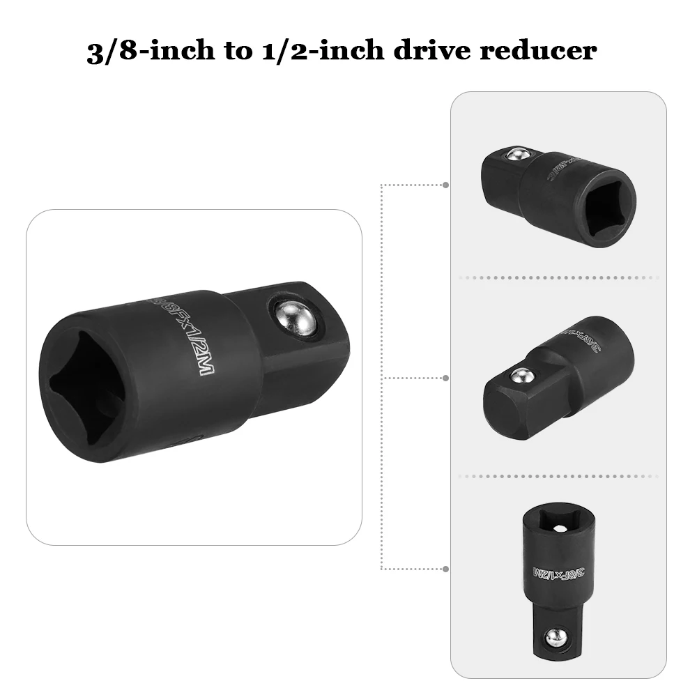 ★【 3/8 "до 1/2" торцевой ключ адаптер】разработан для использования с 3/8 "Ударный ключ. Его пружинный дешаторный шар надежно помогает защелкиваться на розетки, предотвращая их падение