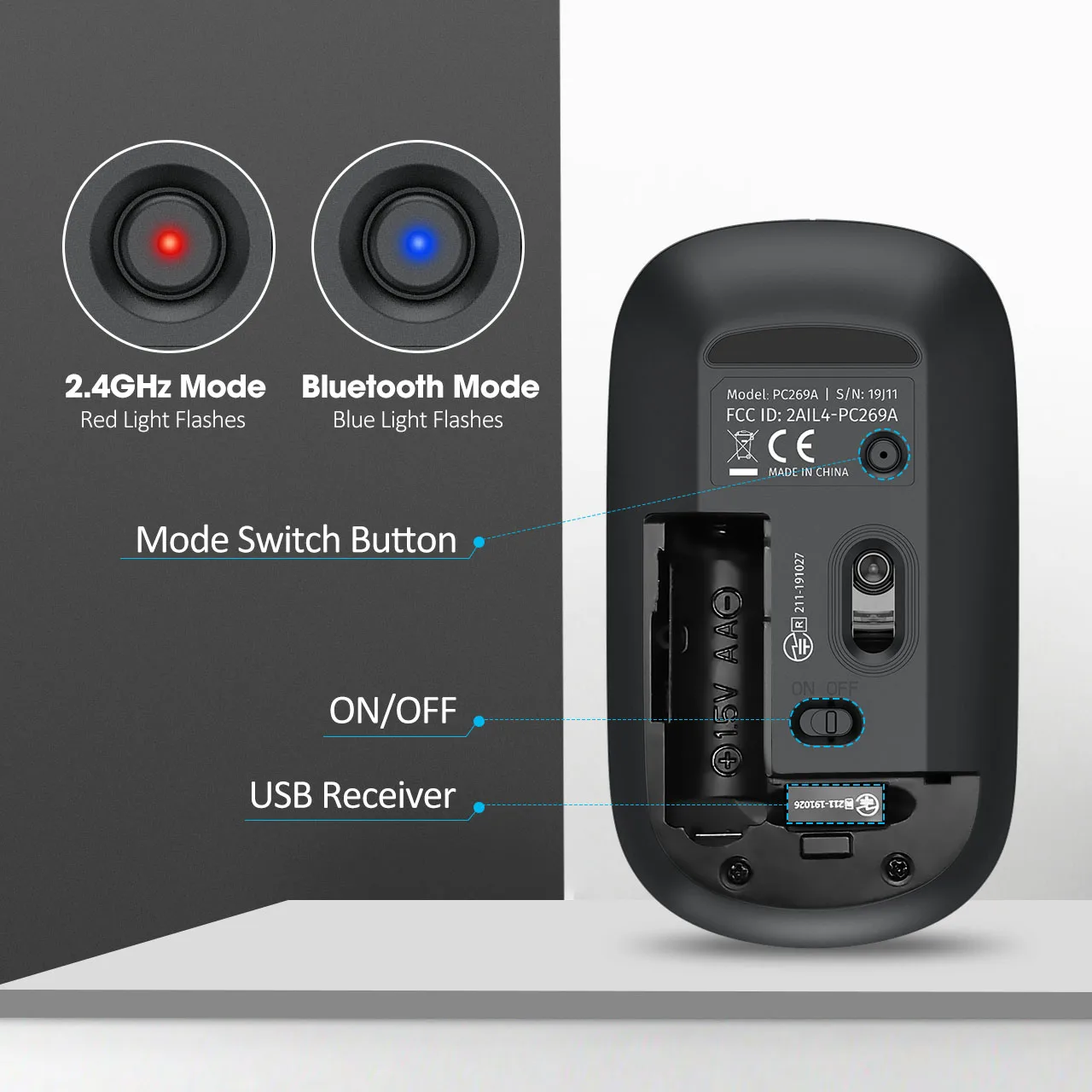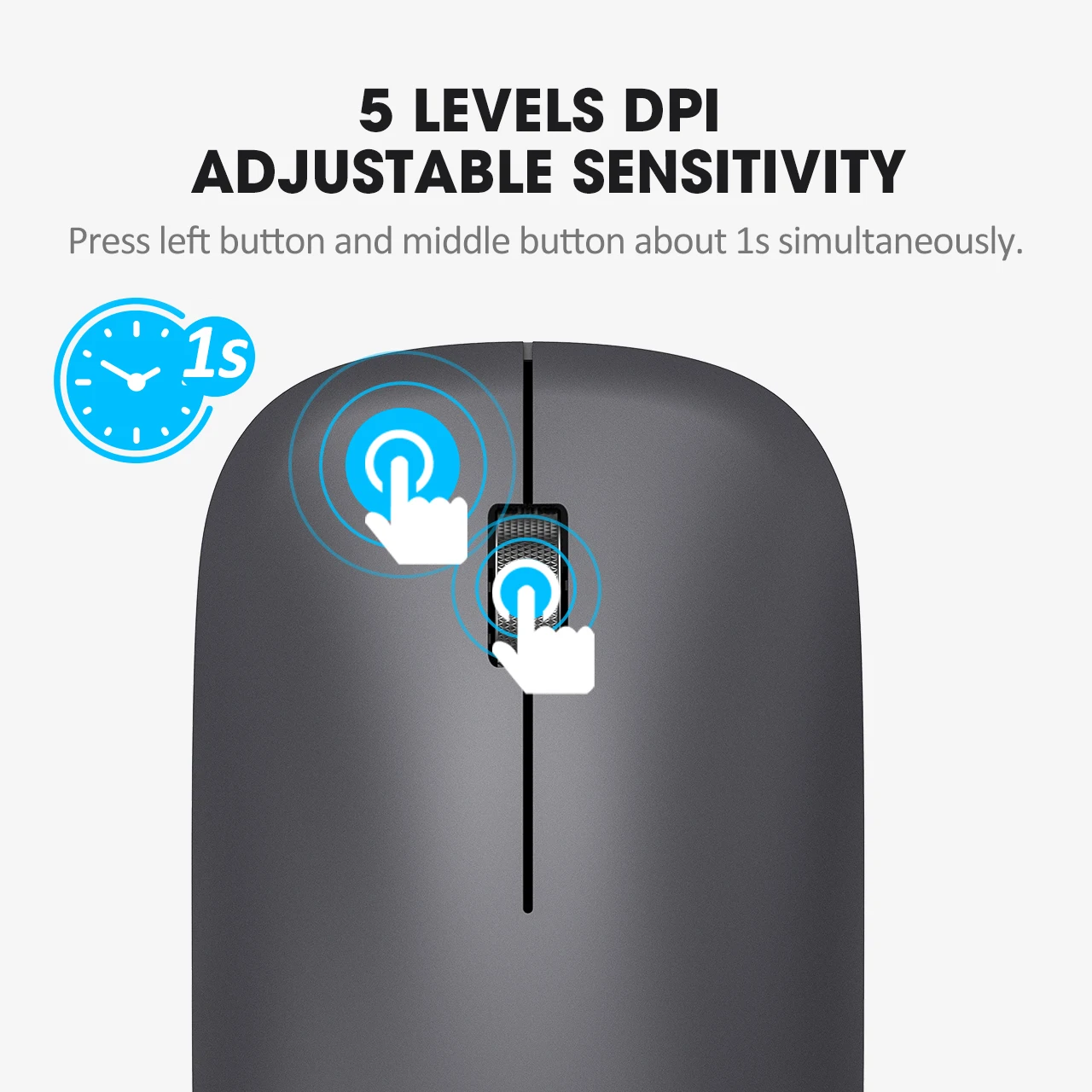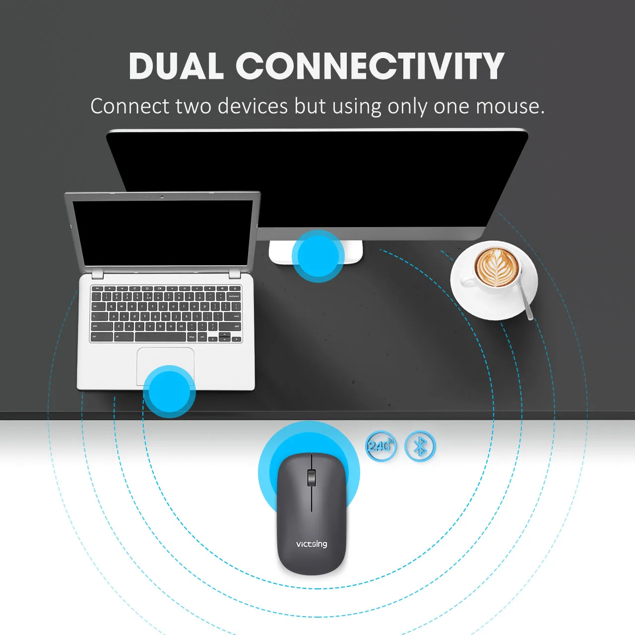 VicTsing 2,4 GHz Беспроводная Bluetooth мышь с двойным режимом портативная Мобильная оптическая мышь с ультра-тонким дизайном бесшумный клик 5 уровней DPI