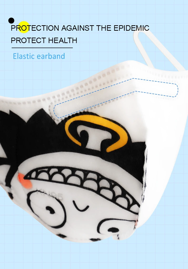 Пятислойная детская маска KN95Материал:Нетканое полотно + Двухслойное выдунное из расплава полотно + фильтр-хлопок