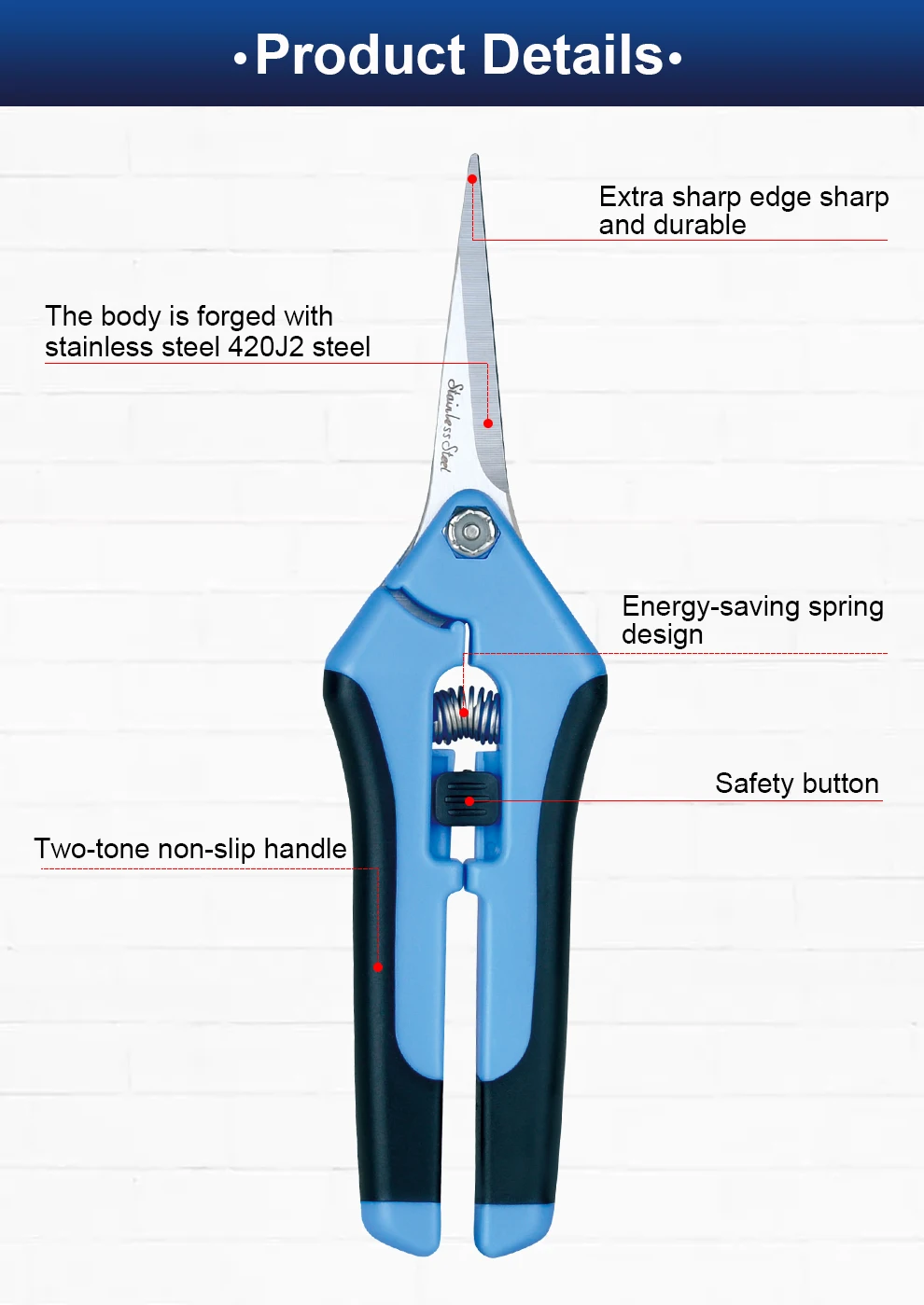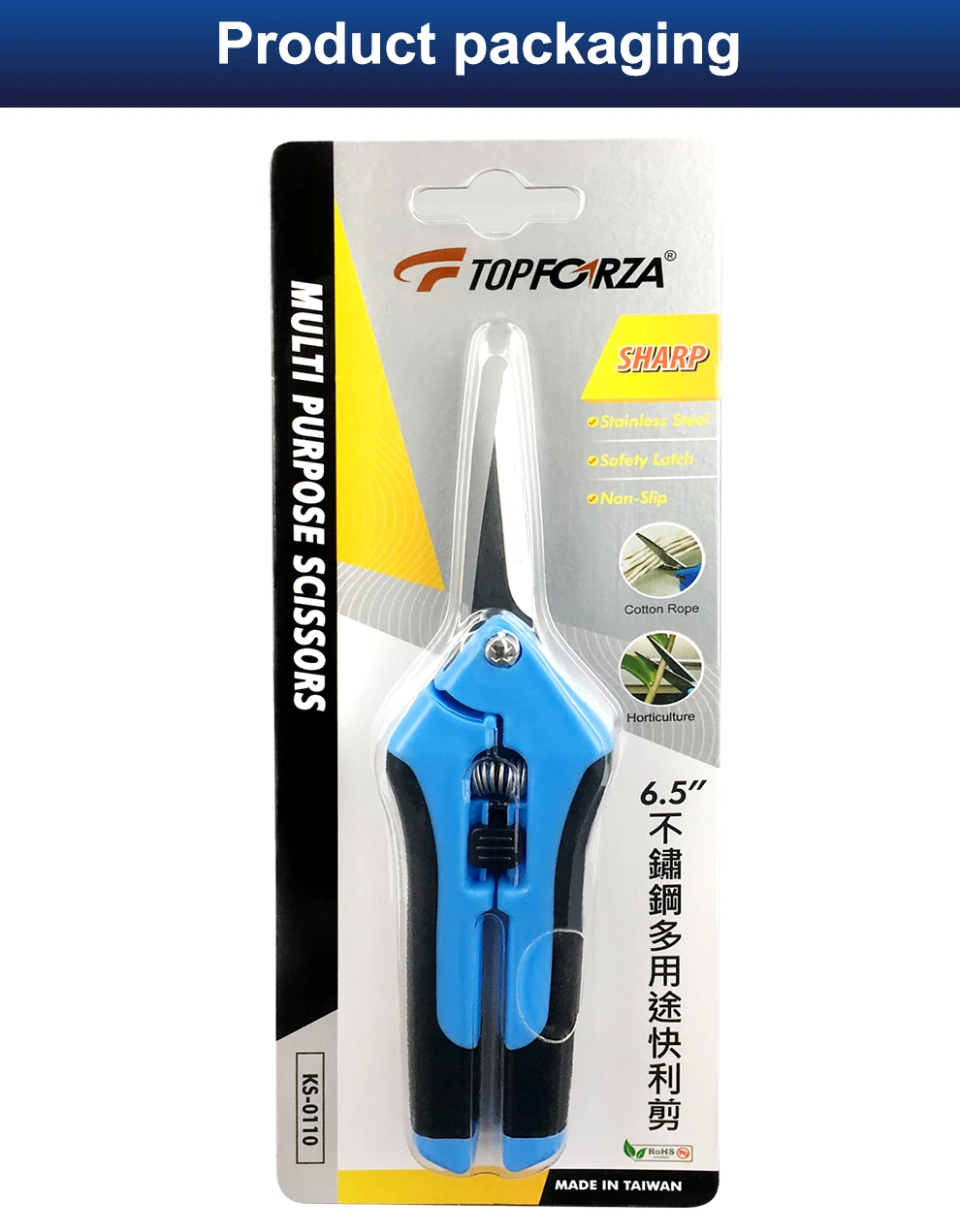 TOPFORZA 6,5 дюймов Садовый ручной секатор с прямыми лезвиями из нержавеющей стали Синие многофункциональные ножницы Сделано в Тайване