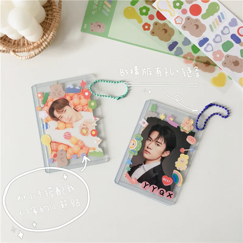 10 шт., 5 шт./лот, прозрачный ПВХ держатель для карт, INS, защита для фотографий, рукава, поп-звезды, держатель для фотографий с цепочкой, школьные корейские канцелярские принадлежности