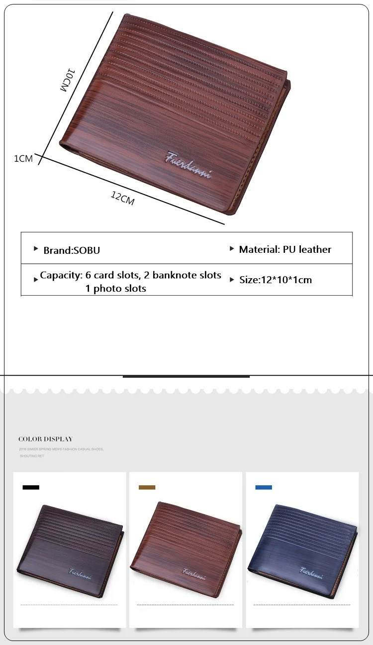 Посылка включает в себя: 1 Мужской кошелек (с OPP полиэтиленовыми пакетами, без розничной коробки)