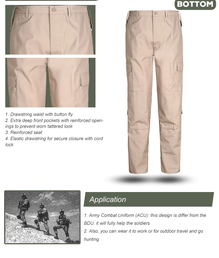 Отзывы о Рубашка и брюки военного камуфляжа Khaki для тактических мероприятий на открытом воздухе военных солдат кемпинга походов охоты