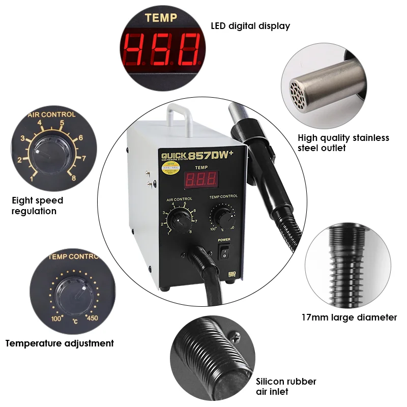 Оригинальная паяльная станция Quick 857DW + с термофеном 580 Вт нагреватель спиральный - купить