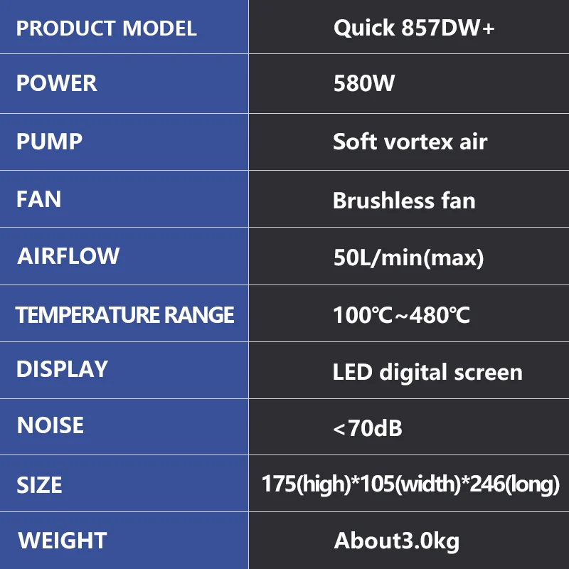 Отзывы о Оригинальная паяльная станция Quick 857DW + с термофеном 580 Вт нагреватель спиральный