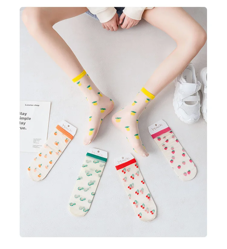 Отзывы о Носки женские ультратонкие прозрачные короткие кружевные с фруктами авокадо