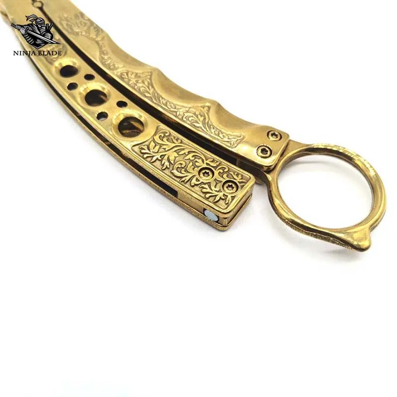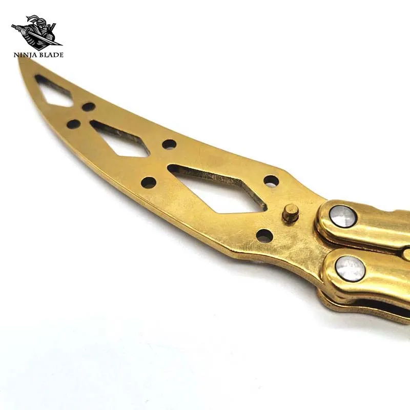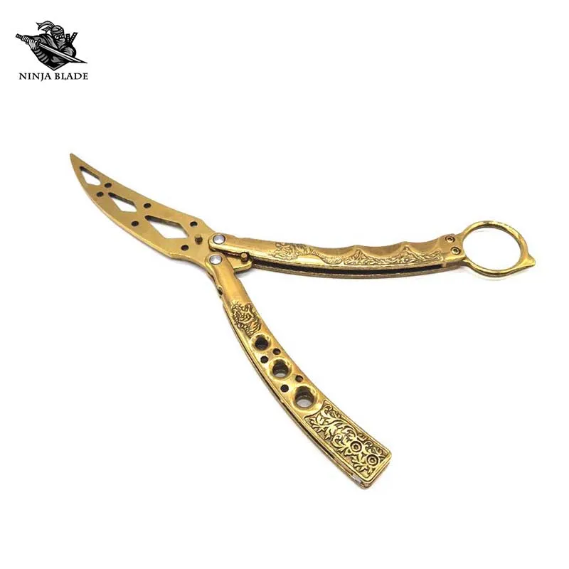 Golden Claw CS Go Butterfly Knife Training Best Budget Unsharpened Blade Practice Curved Beginner Balisong For Sale
