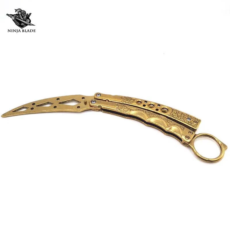 Купить Учебный нож-бабочка Golden Claw CS Go лучший бюджет неточенное лезвие изогнутое для