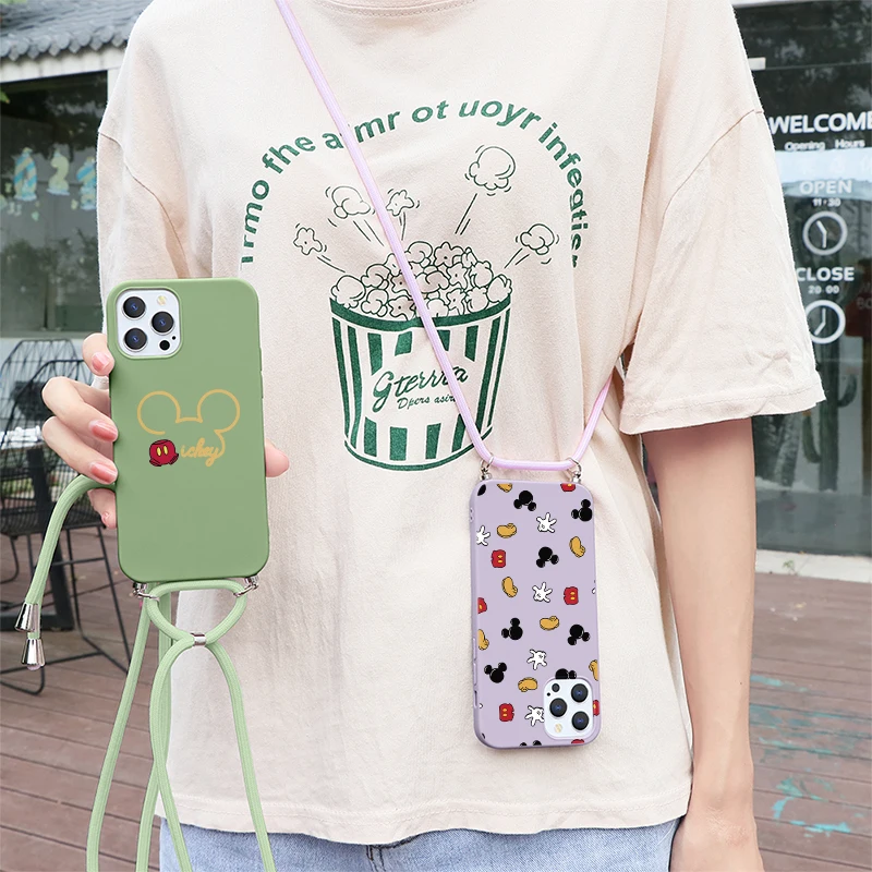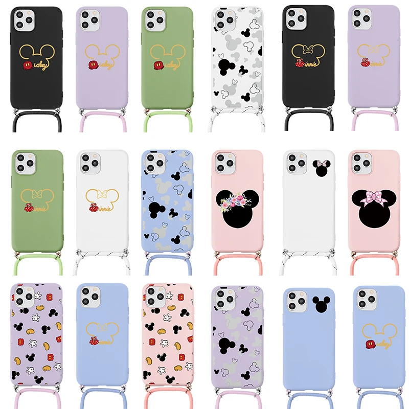 Necklace Lanyard Rope Case For Xiaomi Redmi 9T 9C 9A Note 8T 9 7 6 5 10 S Pro Cute Cartoon Mouse Crossbody Strap Cord Bag Cover