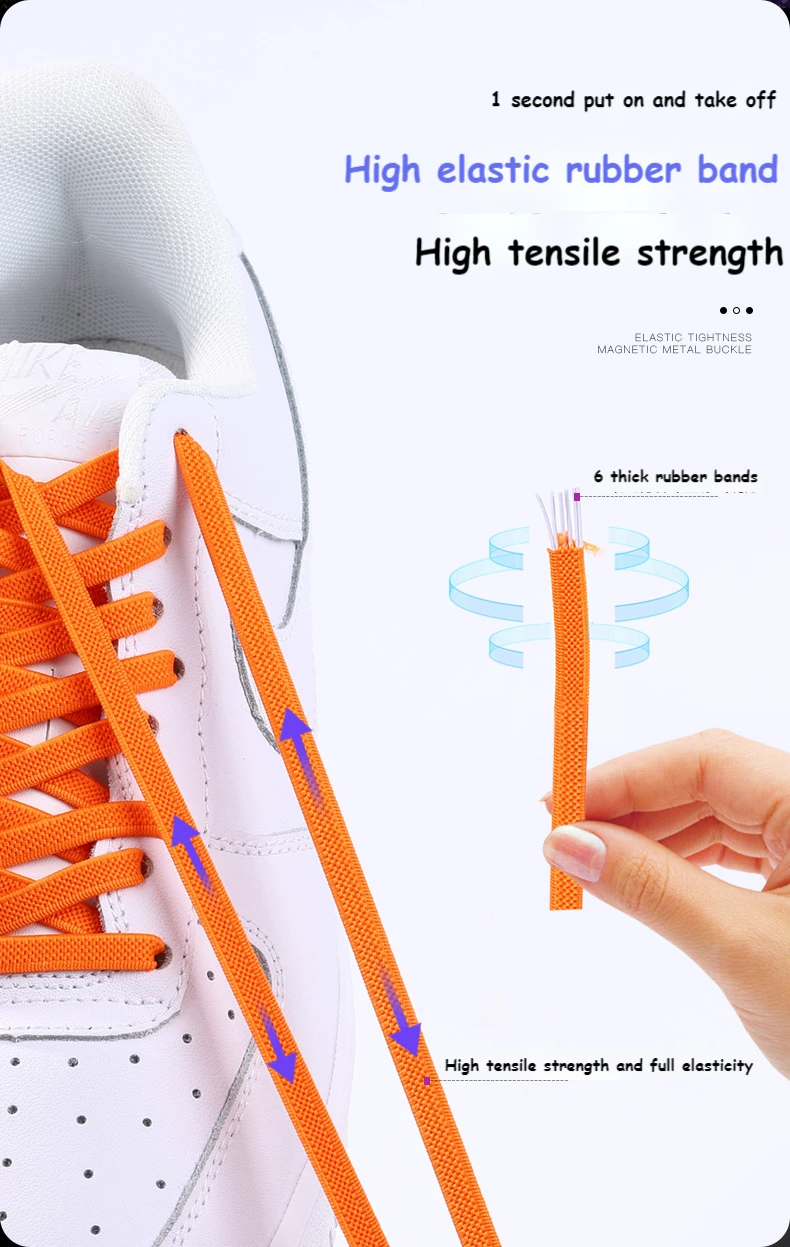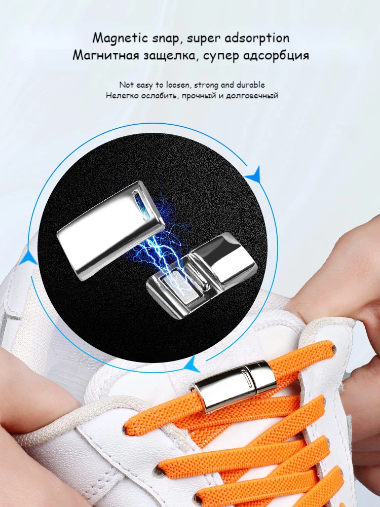 Научный дизайн: обновленная версия, шнурки без галстука имеют уникальную изогнутую магнитную пряжку и плоская эластичная веревка. Конструкция с двойным замком на магнитной застежке позволяет вам никогда не беспокоиться о том, что шнурки будут ослаблены; кружевные замки изогнуты и оснащены плоским тянущимся шнуром, который идеально сочетается с ногами, чтобы ваши ноги были удобны в течение всего дня.