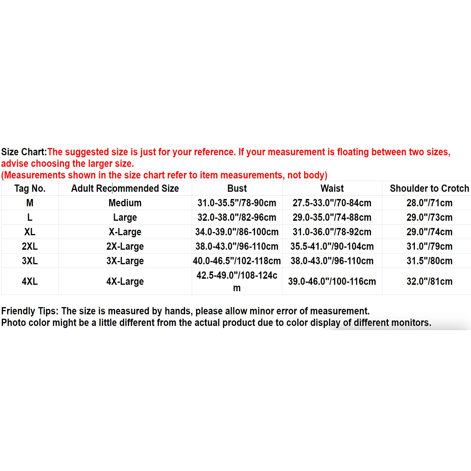 Пожалуйста, внимательно ознакомьтесь с приведенным ниже размером перед заказом, рекомендуется ручная стирка в холодной воде.
