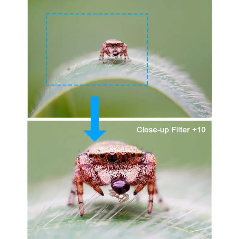 Крупным планом объектив является простым инструментом для макросъемки. Преимущество заключается в том, что это удобно и не нужно компенсировать воздействие; Недостатком является то, что существует сферическая аберрация, которая проявляются как искажение барреля, И после добавления линз крупным планом, фокус объектива ограничен очень узким диапазоном, далеко и близко не может больше фокусироваться.
