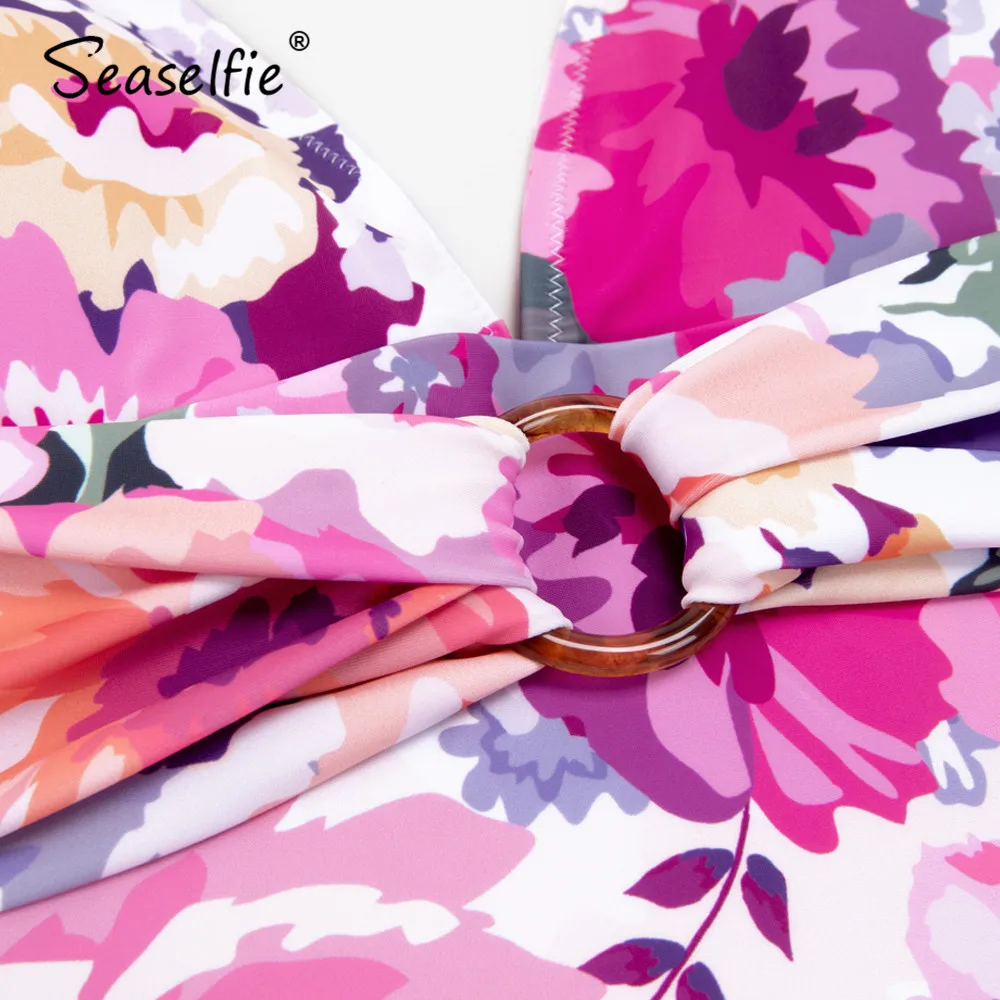 Купить SEASELFIE розовый цветочный Цельный купальник с глубоким вырезом для женщин