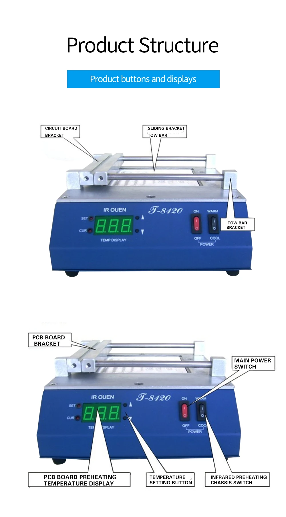 Печь для предварительного нагрева для высокотемпературной опрессовочной станции T-8120 120*120 мм SMD инфракрасная ПИД станция для нагрева пламформ