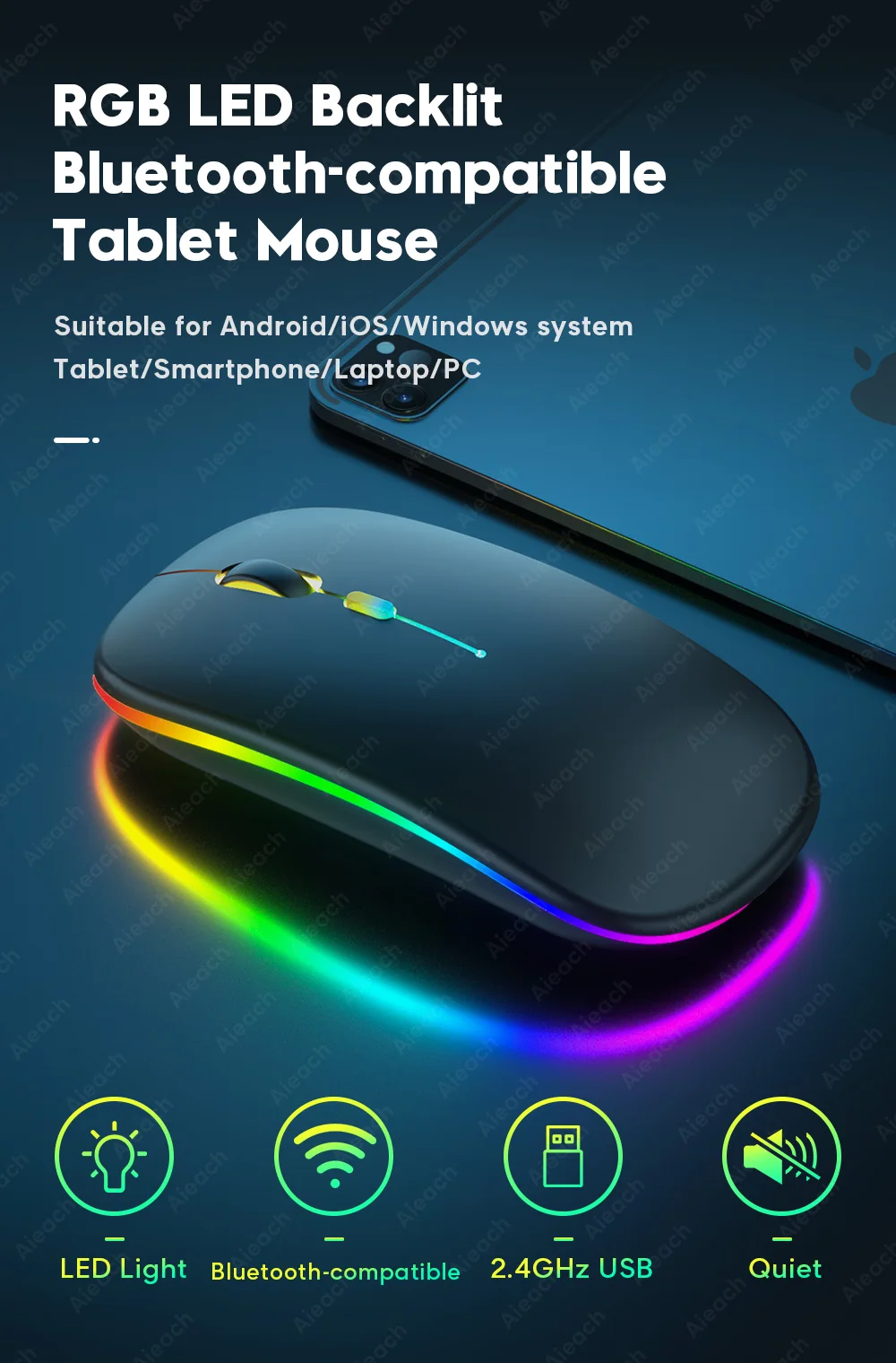 RGB светодиодная подсветка Bluetooth-совместимая мышь для планшета