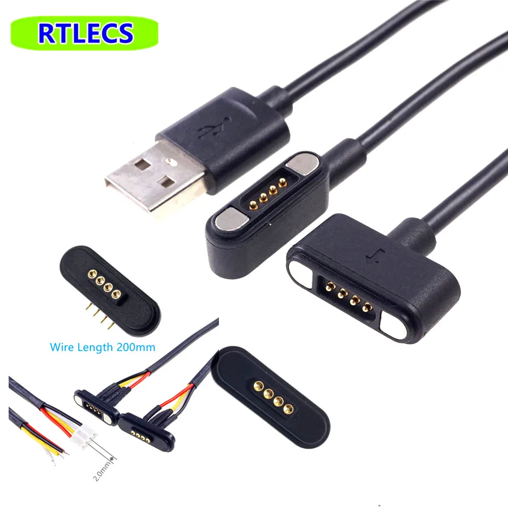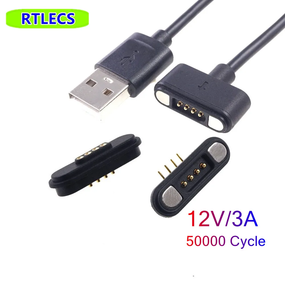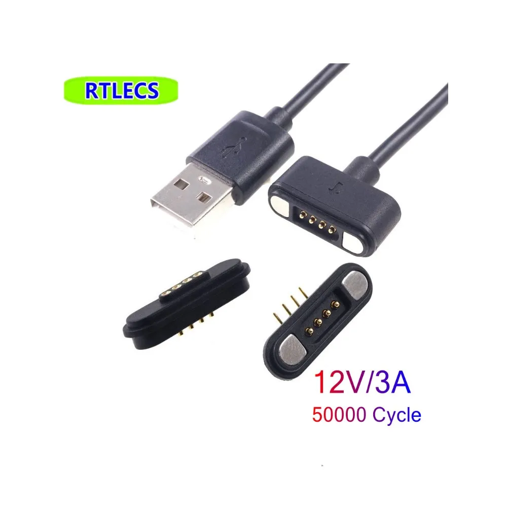 Description3A 12V Magnetic Pogo Pin Connector 4 Positions Cable Wires Pitch 2.2 MM Spring Loaded Power Charge Strong Force 800GF