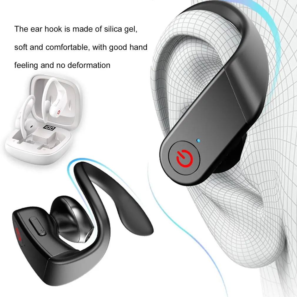 1. Спортивный силиконовый Заушник дизайн: беспроводные наушники для занятий спортом имеют эргономичный и гибкий дизайн заушника с гелевыми гибкими силиконовыми ушными колпачками для обеспечения комфортного прилегания наушников и устранения шума.
