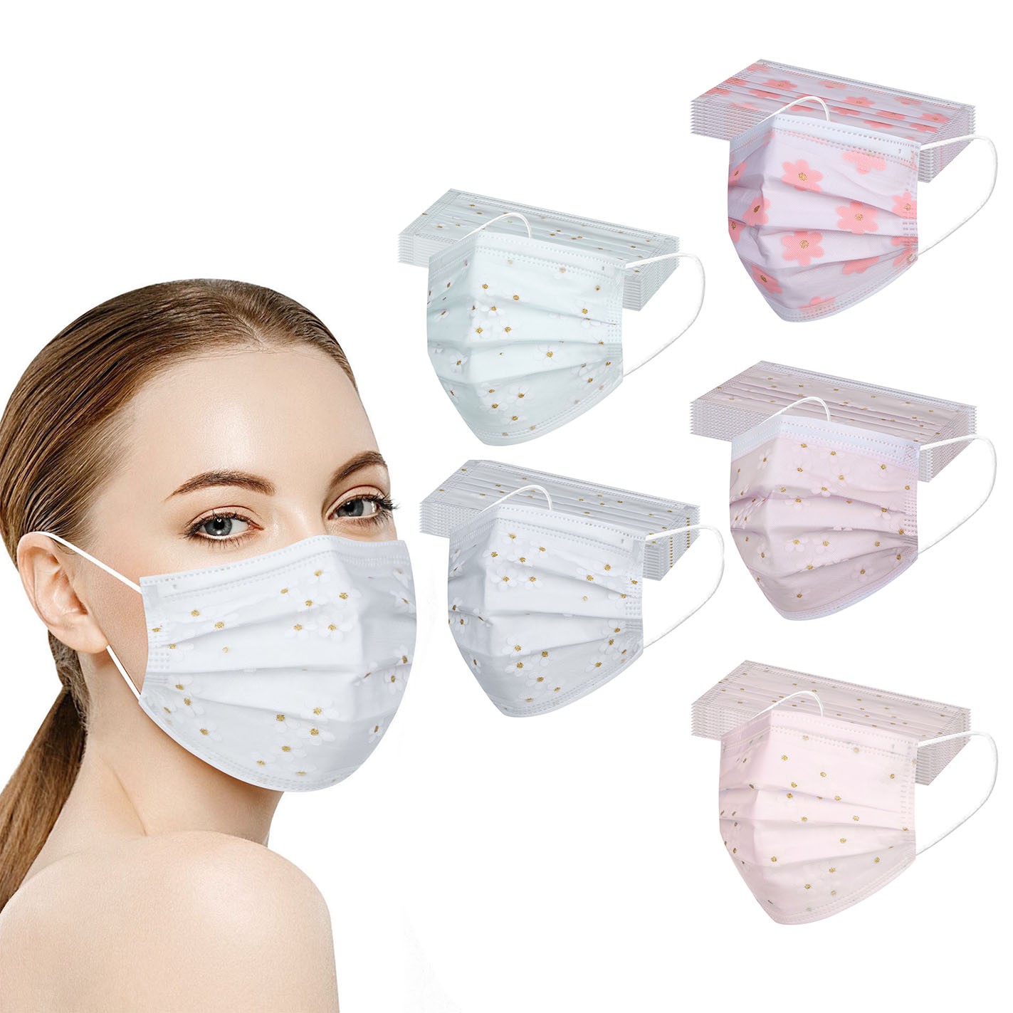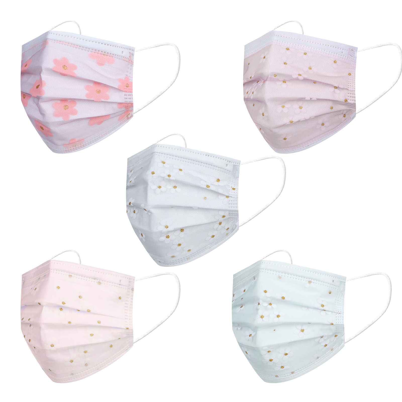 Купить Маска сетчатая одноразовая для взрослых четырехслойная Защитная с цветочным