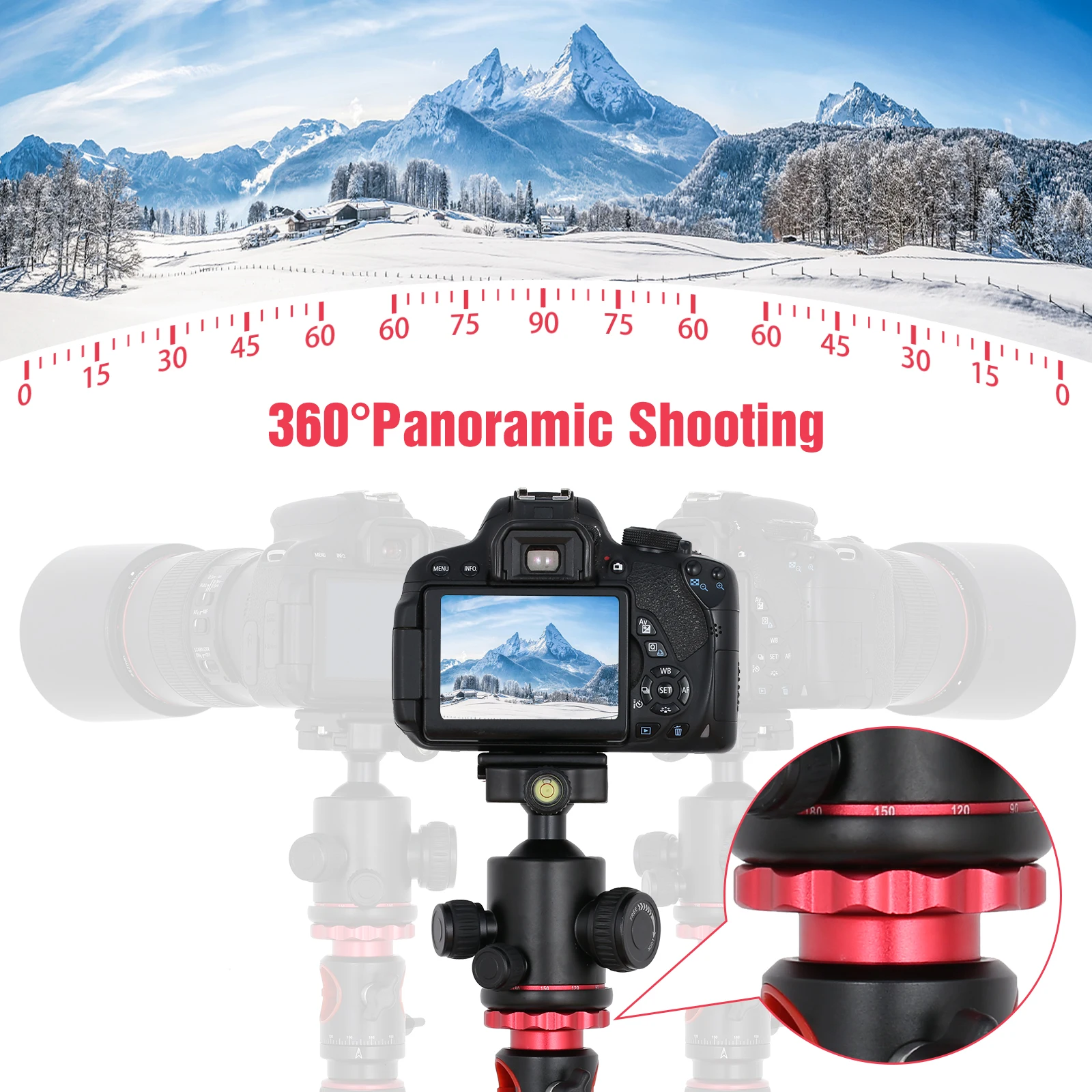 [Панорамная шаровая Головка с поворотом на 360 градусов и горизонтальная Центральная колонна]Легко и плавно вращается, с 1/4 дюймовым винтом, совместим с камерой, видеокамерой и многими другими, центральная колонка может быть перевернута, идеально подходит для съемки под низким углом, панорамной фотографии, видеосъемки, фотография пейзажа и т. Д.