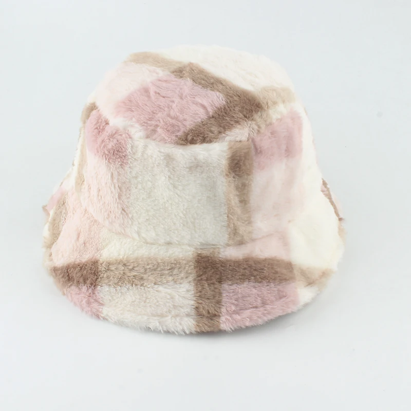 Зимние шапки из искусственного меха для женщин теплые в клетку с принтом мужская - купить