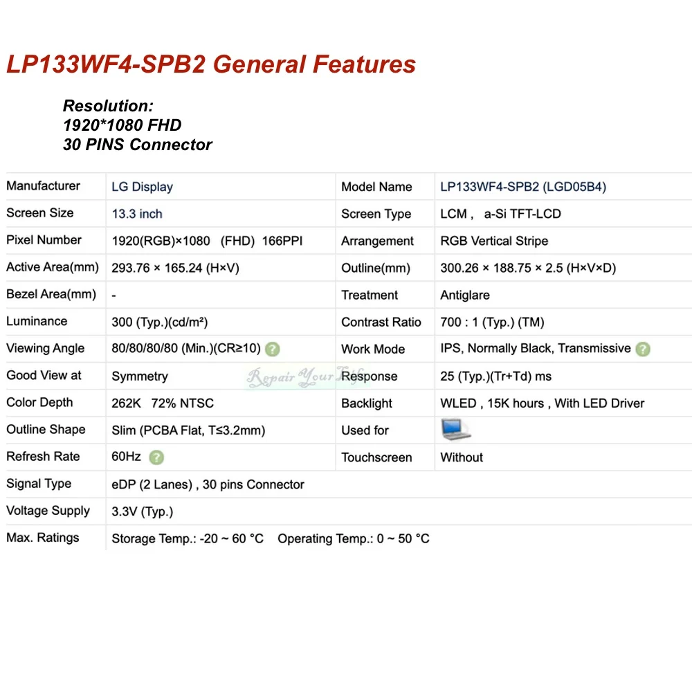 FHD LP133WF4-SPB2 ,30 контактов разъем